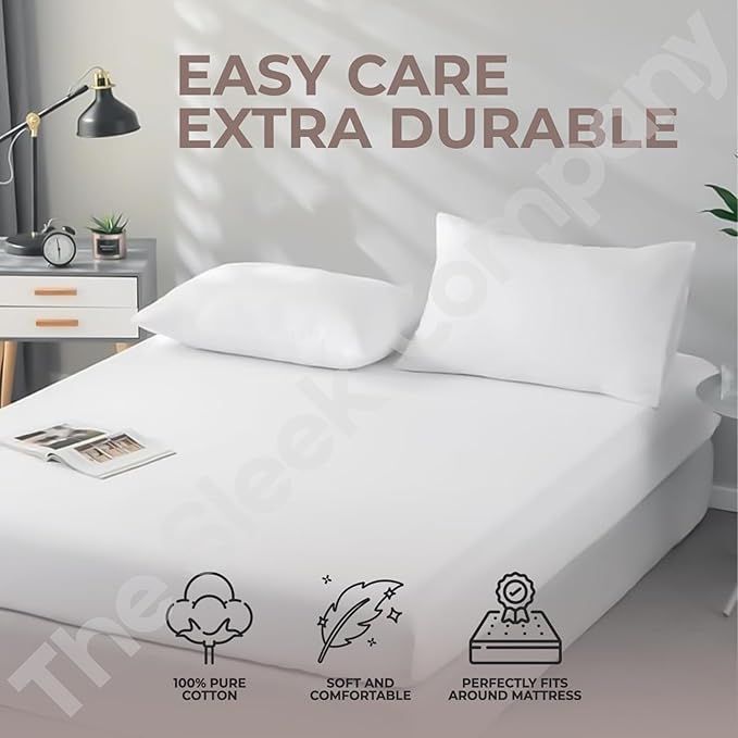The 100% cotton construction ensures a luxuriously soft touch while promoting airflow for a fresher night’s sleep. Each fitted sheet is elasticated on all four corners, guaranteeing a snug, secure fit for mattresses up to 12 inches deep — ideal for modern homes, hotels, guest houses, and care environments.