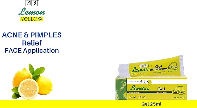 The A3 Lemon Gel 25ml is a skin-lightening gel designed to improve skin tone and radiance while soothing post-acne irritation.