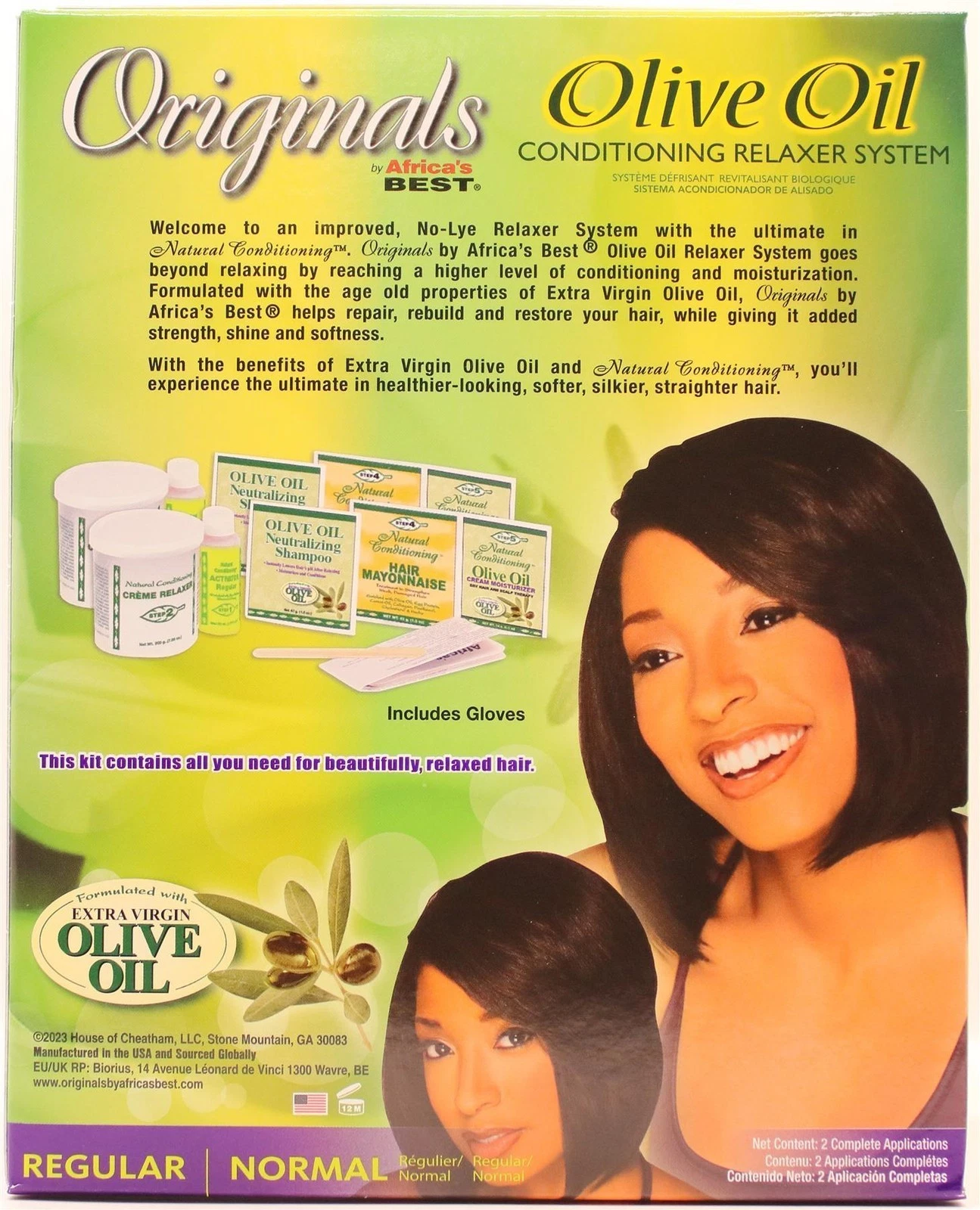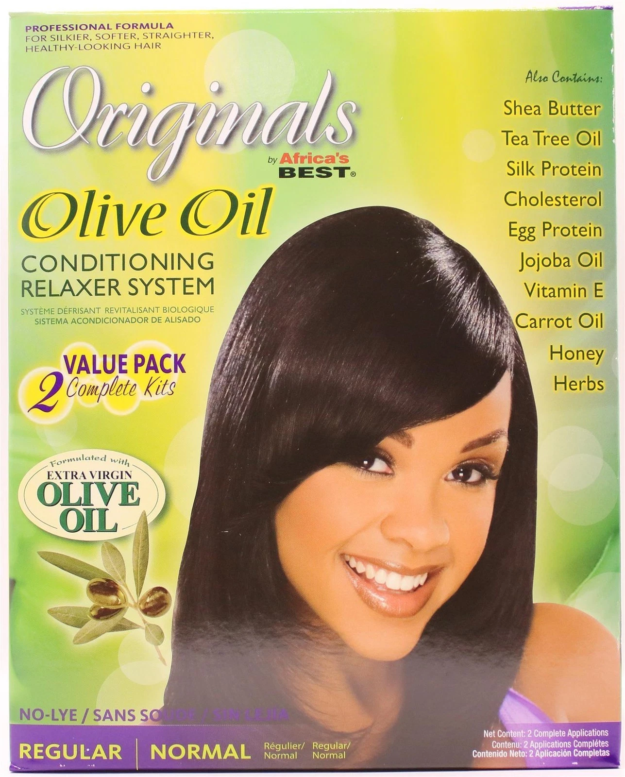 Description: Formulated With The Age Old Properties Of Extra Virgin Olive Oil, Our Olive Oil Coniditoning Relaxer System Helps Repair, Rebuild, And Restore You Hair, While Giving It Added Strength, Shine, And Softness. Go Beyond Relaxing By Reaching A Higher Level Of Conditioning And Moisturization To Experience The Ultimate In Healthier, Softer, Silkier, Straighter Hair. Designed For Normal Hair Textures.