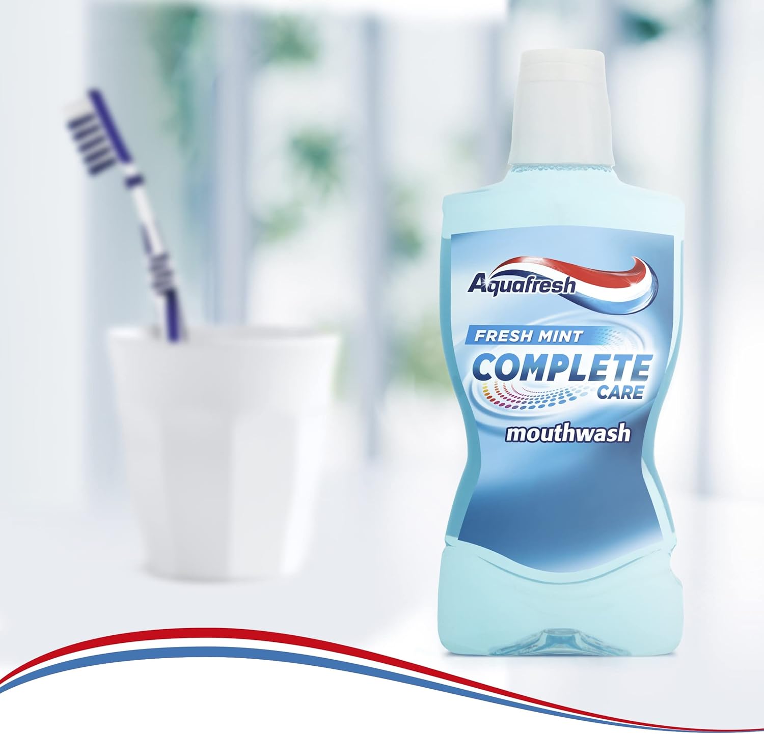 - Intended for everyday use, pour 10ml of Aquafresh Complete Care mouthwash, rinse for 1 minute, and then spit it out. Use twice daily