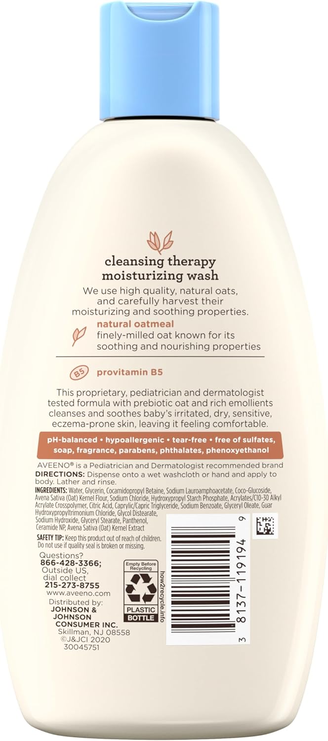 - 8-ounce bottle of Aveeno Baby Cleansing Therapy Moisturizing Baby Body Wash with natural oatmeal and provitamin B5