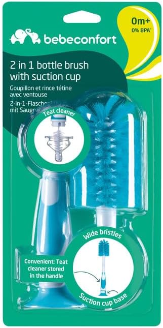 Bebe Confort brand baby bottle cleaner, whose model is 2-in-1 bottle brush with suction cup and reference 3102201830