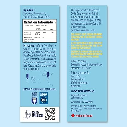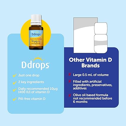 - Recommended daily 10 µg (400 IU) in just one tasteless drop. For infants and young children.