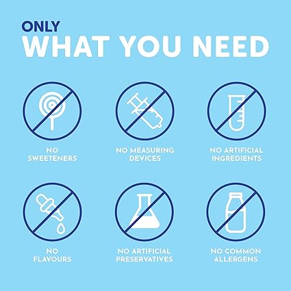 - Free from preservatives, additives, artificial flavours, colours, and common allergens.