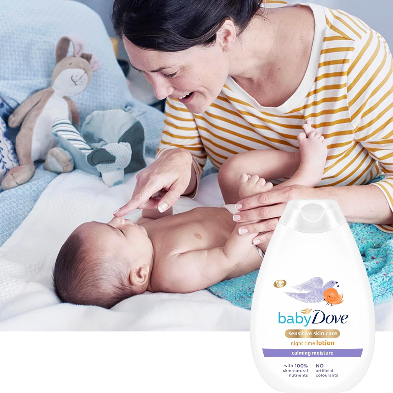 - Baby Dove Calming Nights Lotion is a gentle baby lotion that soothes dry baby skin from the first use
