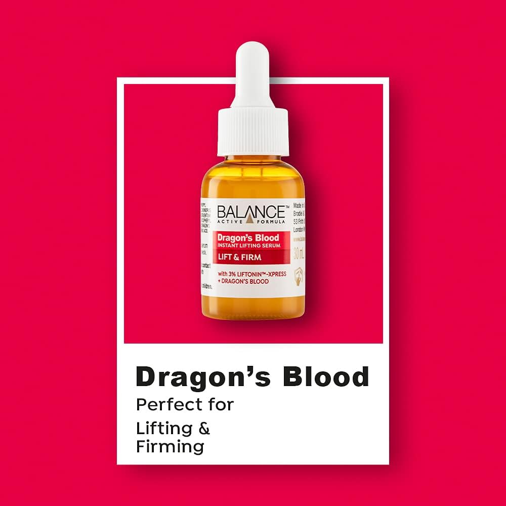 Revitalise Your Skin with Instant Lift – Balance Active Formula Dragon’s Blood Instant Lifting Serum. Discover the secret to youthful radiance with Balance Active Formula Dragon’s Blood Instant Lifting Serum. Infused with 3% LIFTONIN™-XPRESS, this innovative serum delivers an immediate lifting and tightening effect, making your skin look visibly younger after just one application.