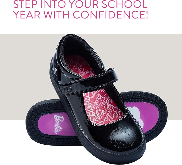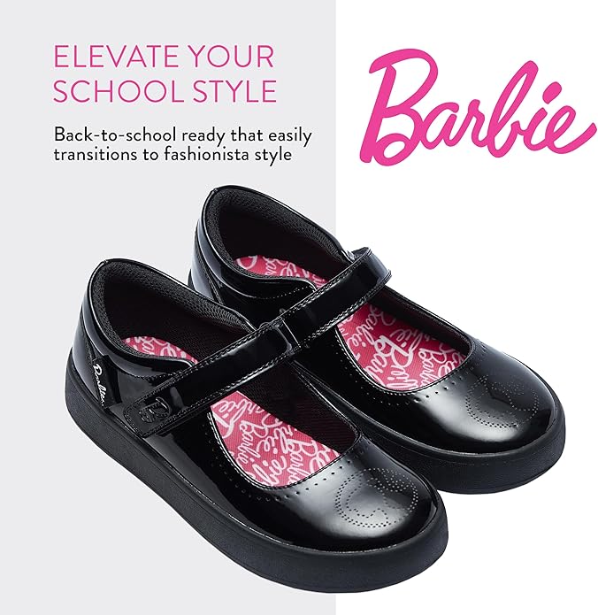 - Fashion Meets Function In Barbie Shoes: These Barbie girls black school shoes are not just any ordinary Barbie footwear; they’re a statement of style with a playful twist, perfect for the fashion forward girl