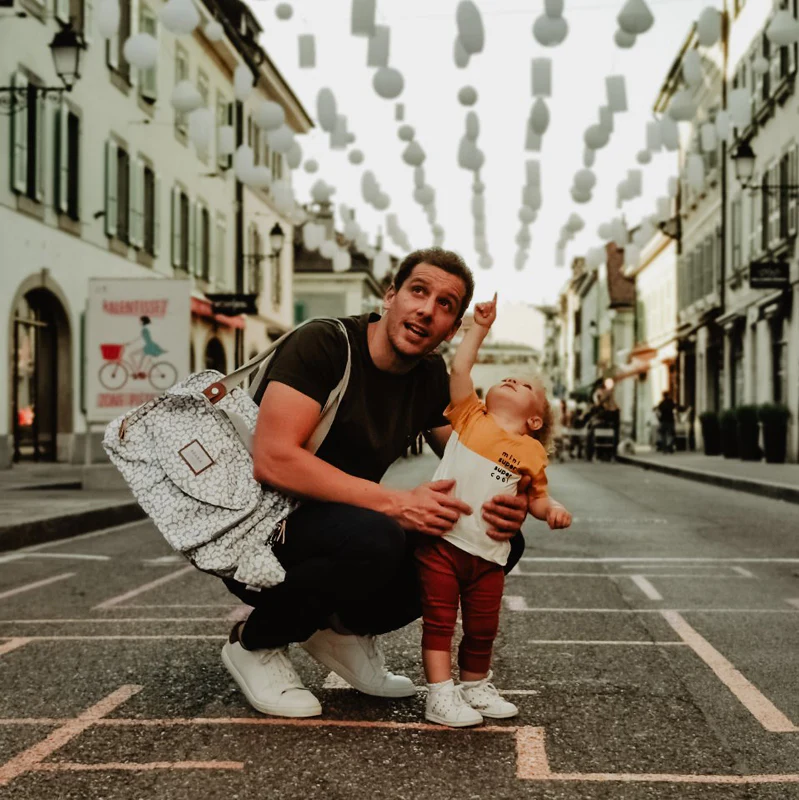 It has detachable shoulder straps and can also be attached to strollers or slotted over a retractable suitcase handle.