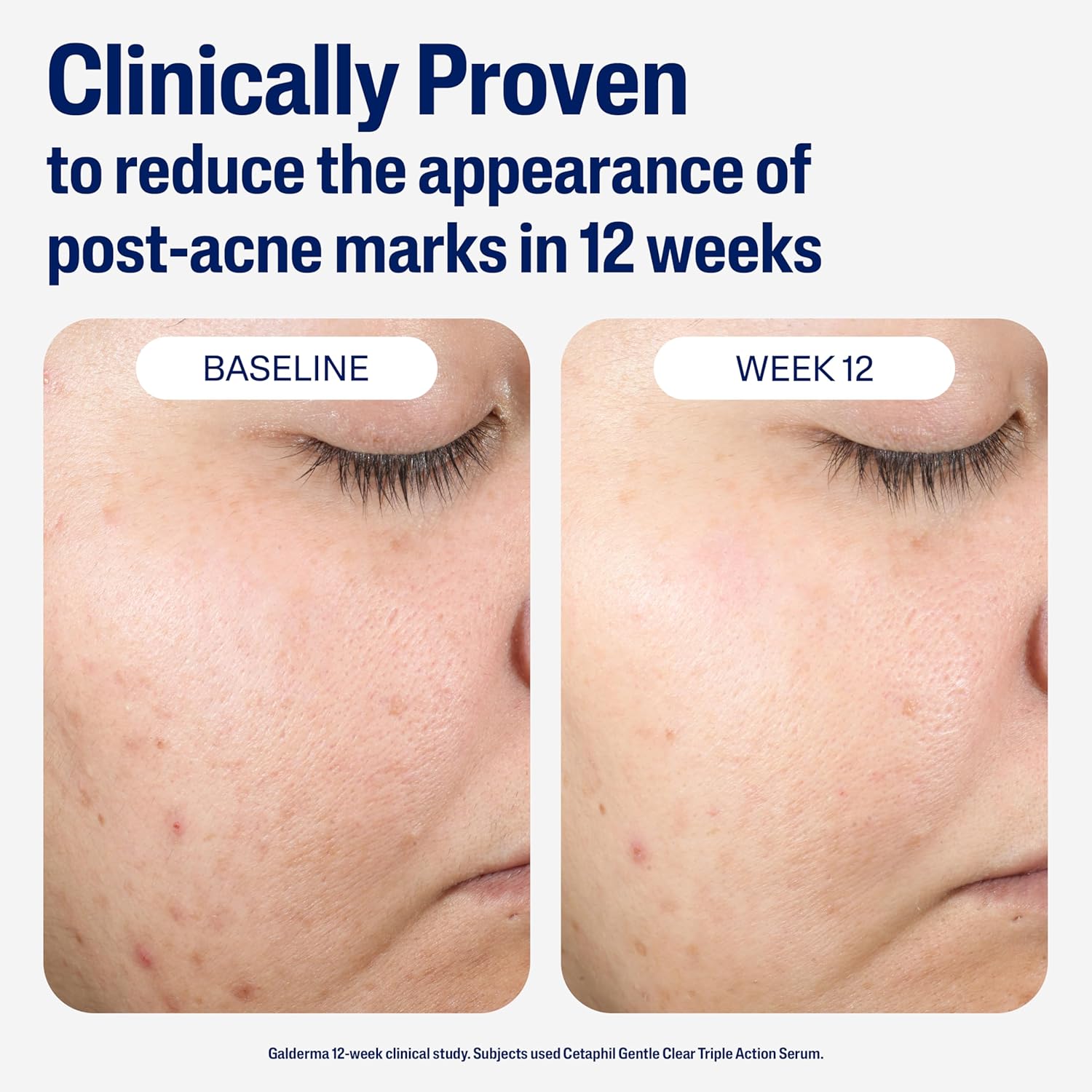 The Cetaphil Gentle Clear Repairing Post-Acne Serum is an oil-free, 1 fl oz treatment specifically formulated for sensitive, acne-prone skin to reduce the appearance of post-acne marks and improve skin texture. It utilizes a 0.5% concentration of Bakuchiol, a plant-derived alternative to retinol that is better tolerated by sensitive skin while providing similar anti-aging and skin-renewing benefits.
