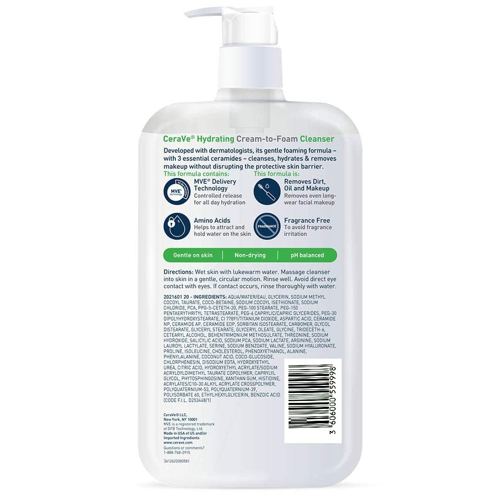 - CeraVe Hydrating Cream-to-Foam Cleanser (12 oz Pump)