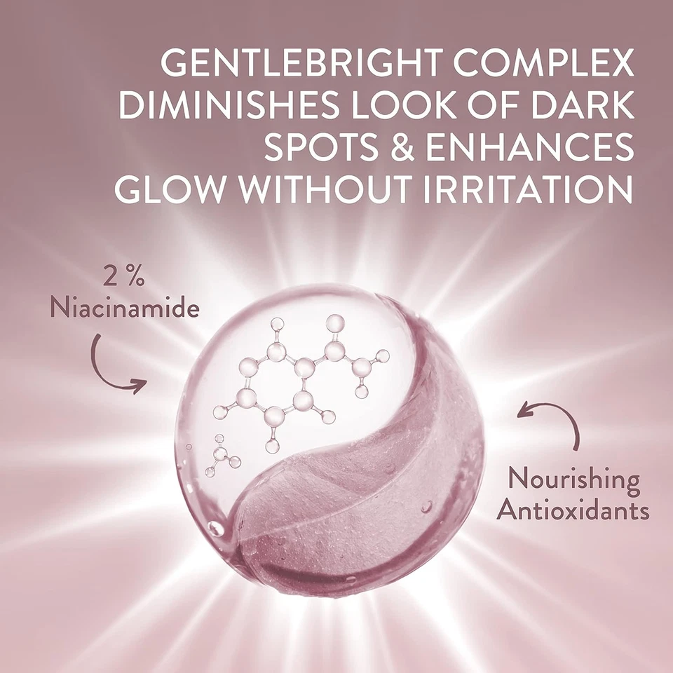 The cleanser features the GentleBright Complex with 2% Niacinamide and antioxidants to address hyperpigmentation. It also contains Polyhydroxy Acid (PHA) for gentle exfoliation and promoting skin turnover. The formula is designed to be gentle, defending against common signs of skin sensitivity. It is also fragrance-free, oil-free, paraben-free, hypoallergenic, and non-comedogenic.