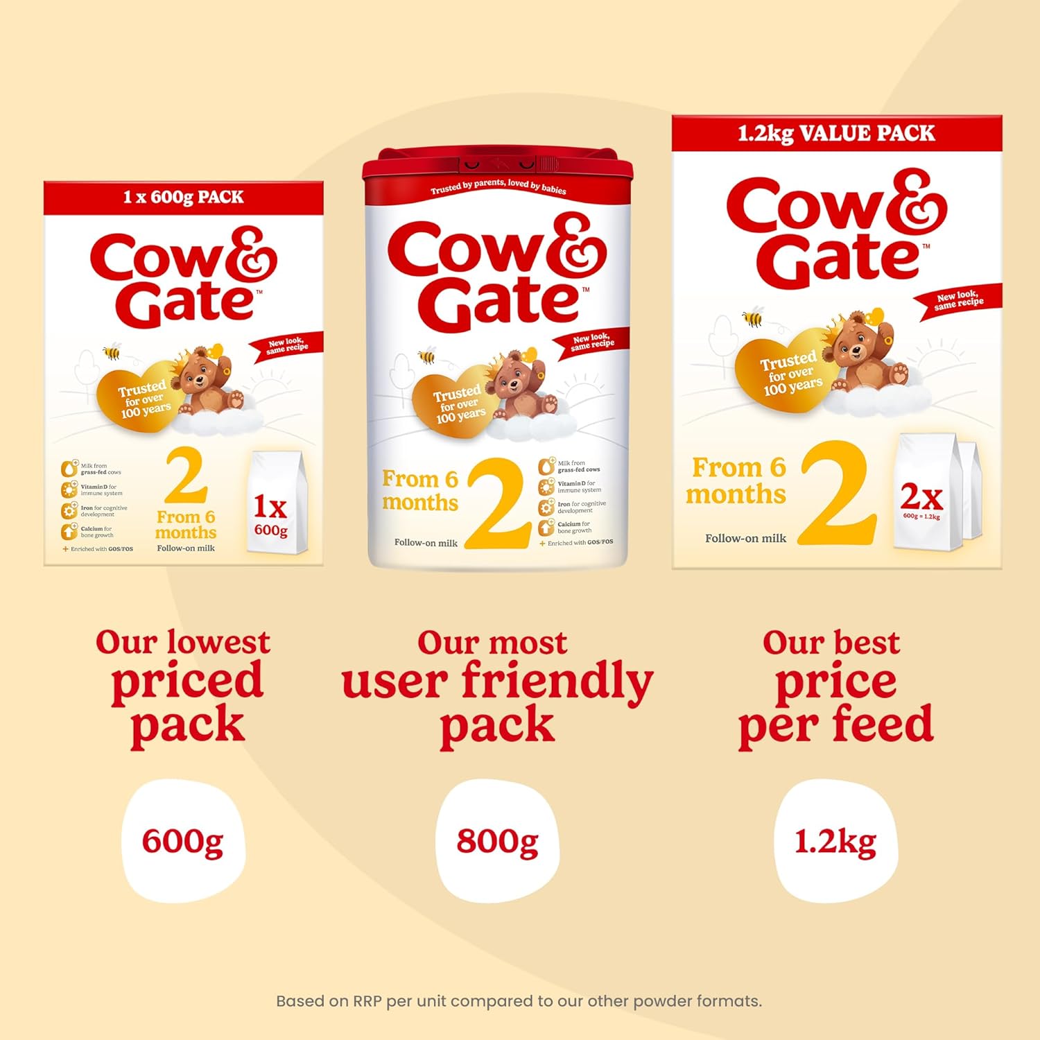 - Age Range: Suitable for babies from 6 to 12 months as part of a mixed diet during weaning, not for 1-2 year old toddlers. Cow & Gate produces a separate “Toddler Milk” for children over 12 months.