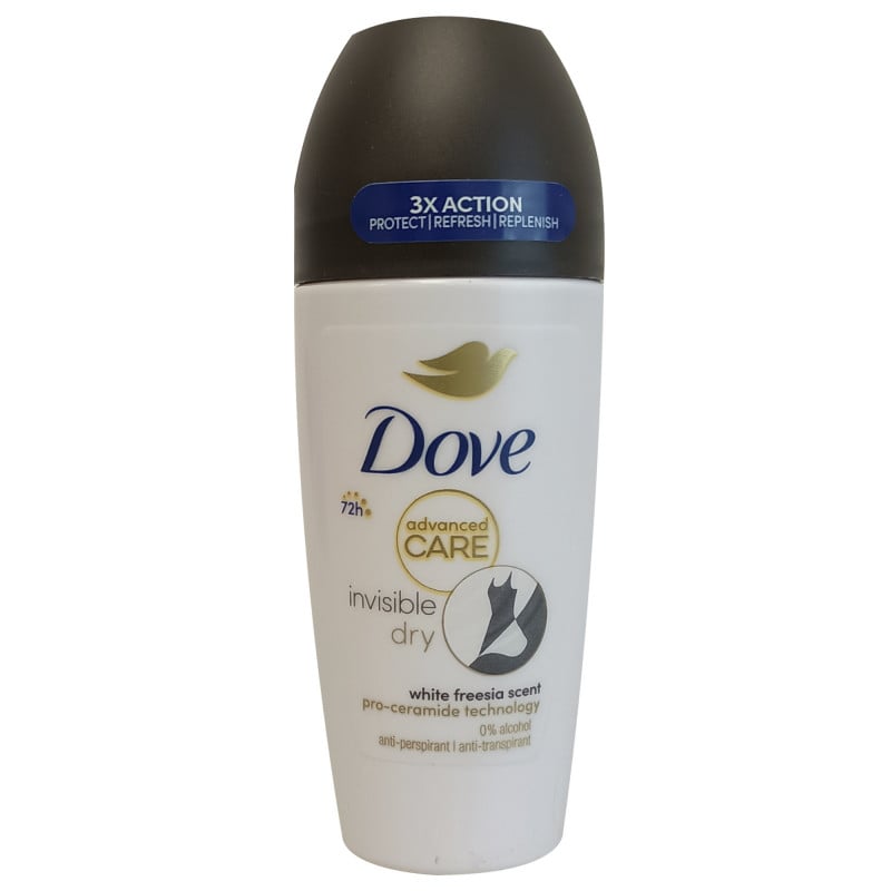 Dove Advanced Care Invisible Dry Anti-Perspirant Roll On Deodorant offers up to 72 hours of sweat and odour protection whilst providing effective skin care, This anti-stain deodorant is developed to provide invisible anti-perspirant protection, ensuring clothes are free of white marks and that you stay protected, This roll on uses Dove’s revolutionary Pro-Ceramide technology to retain moisture deep within your skin, With a calming white freesia scent, this roll on women’s deodorant helps you kick-start your day with confidence, Formulated with 0% alcohol, this deodorant roll on combines gentle care with expert protection, Dove deodorant helps delicate underarm skin to recover from irritation caused by shaving, leaving it feeling softer and smoother