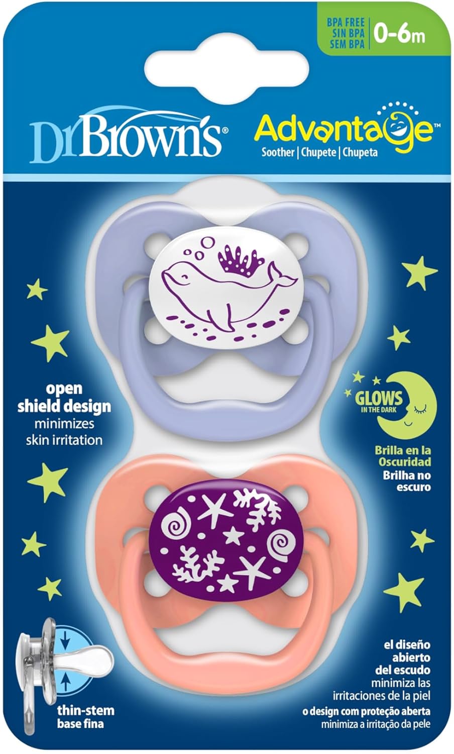 Dr Brown’s Advantage Glow in the Dark Soother Pink 0-6m 2Pk