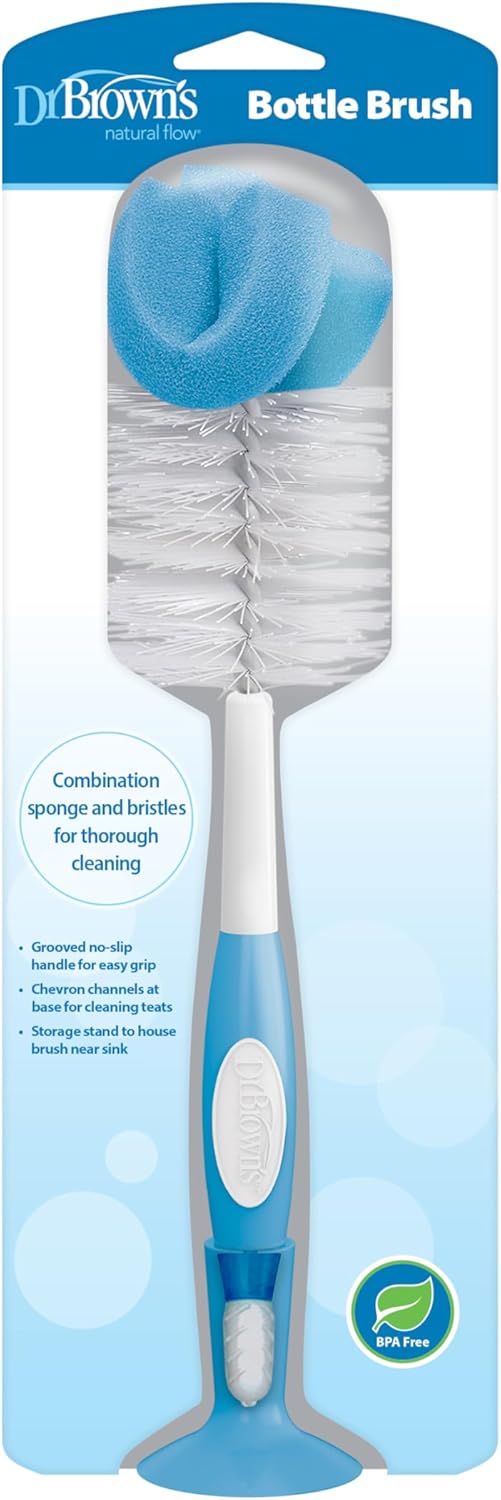 The Dr Brown’s Bottle Brush is designed specifically for all Dr Brown’s bottles and features a combination bristle and sponge head to thoroughly scrub bottles clean.