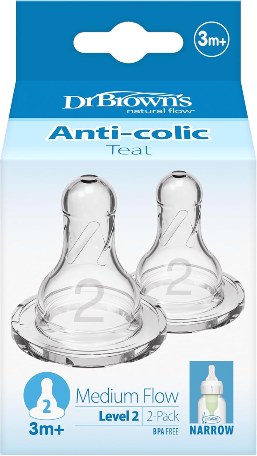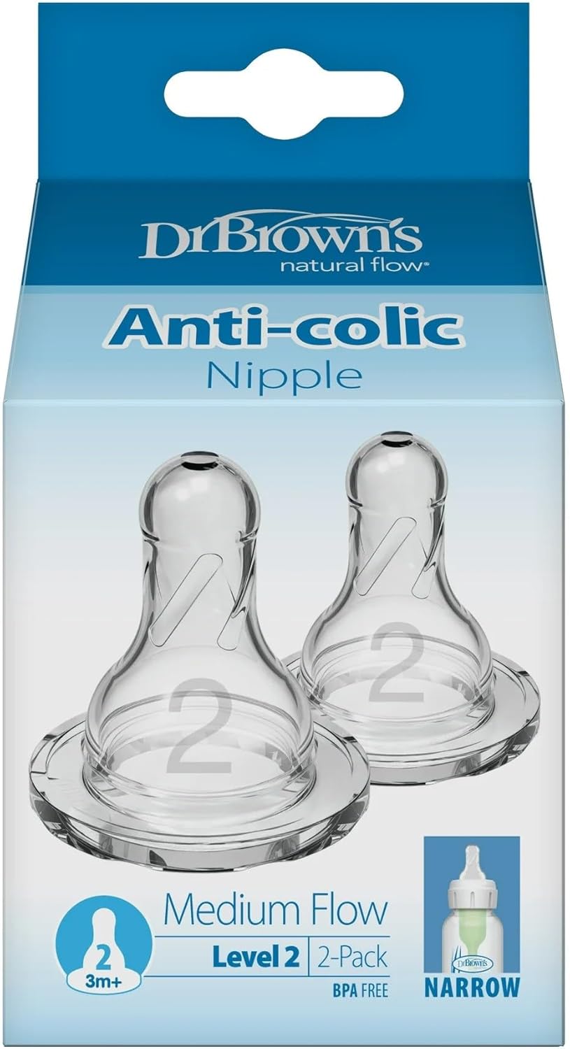 Find & Get Products Dr Brown's Dr. Brown’s Dr Brown Natural Flow Level 2 Narrow Nipple Set of 2 (3M+) Clear