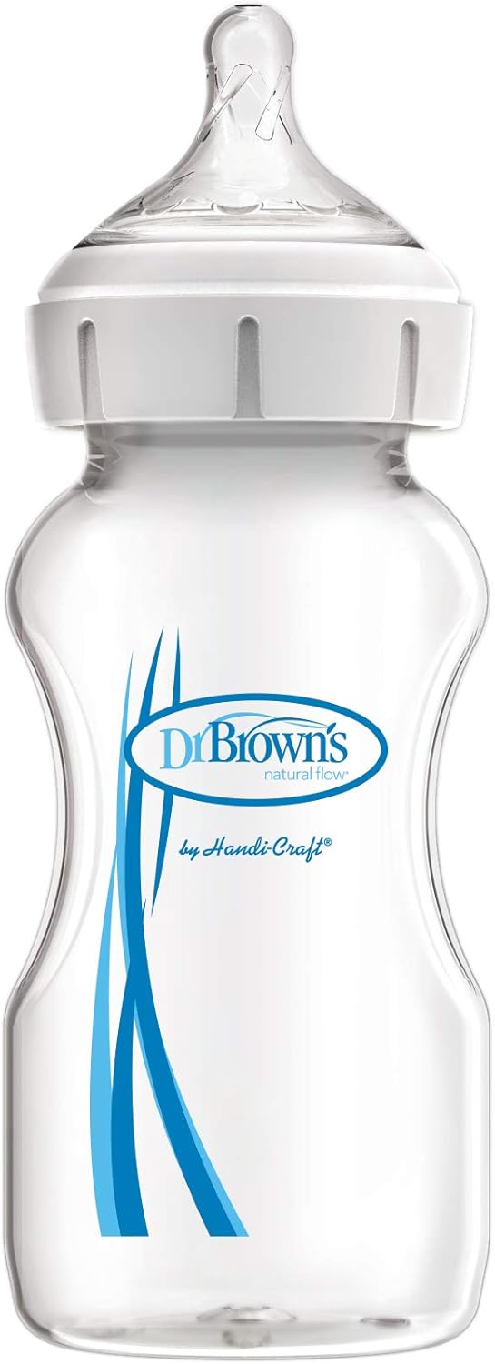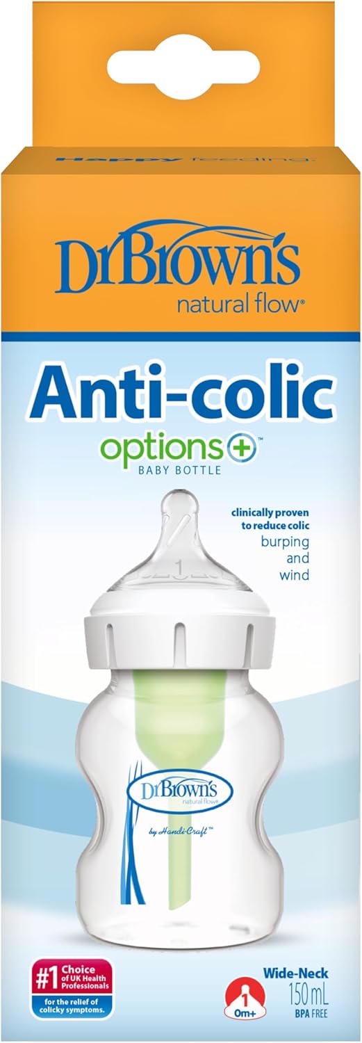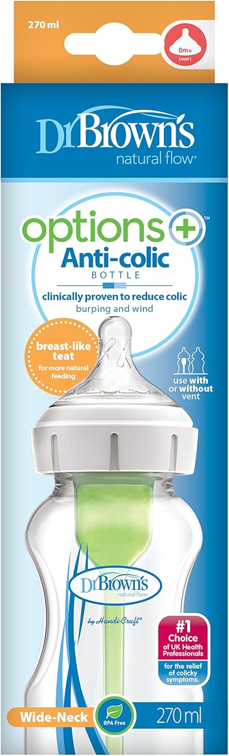 Your options have never been better with Dr. Brown’s Natural Flow® Options+™ Wide-Neck Bottle. From teat to base, the Options+™ Wide-Neck Bottle makes for a comfortable feeding experience for baby and eases the transition from breast to bottle and back again. Starting at the top, the NEW breast-like teat shape is correctly contoured for a proper latch and a more natural bottle feeding experience – perfect for switching from breast to bottle and back again! Each teat is specially engineered to offer the same consistent, natural flow, so you and baby know what to expect in every feeding. Together with the anti-colic internal vent system, they offer a reliable and trusted bottle feeding experience that makes Dr. Brown’s the #1 pediatrician recommended bottle in the U.S.