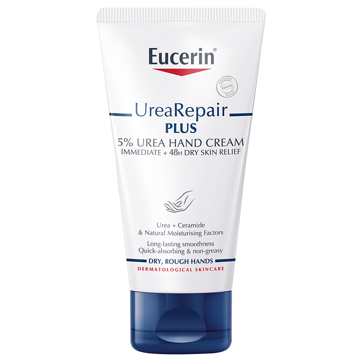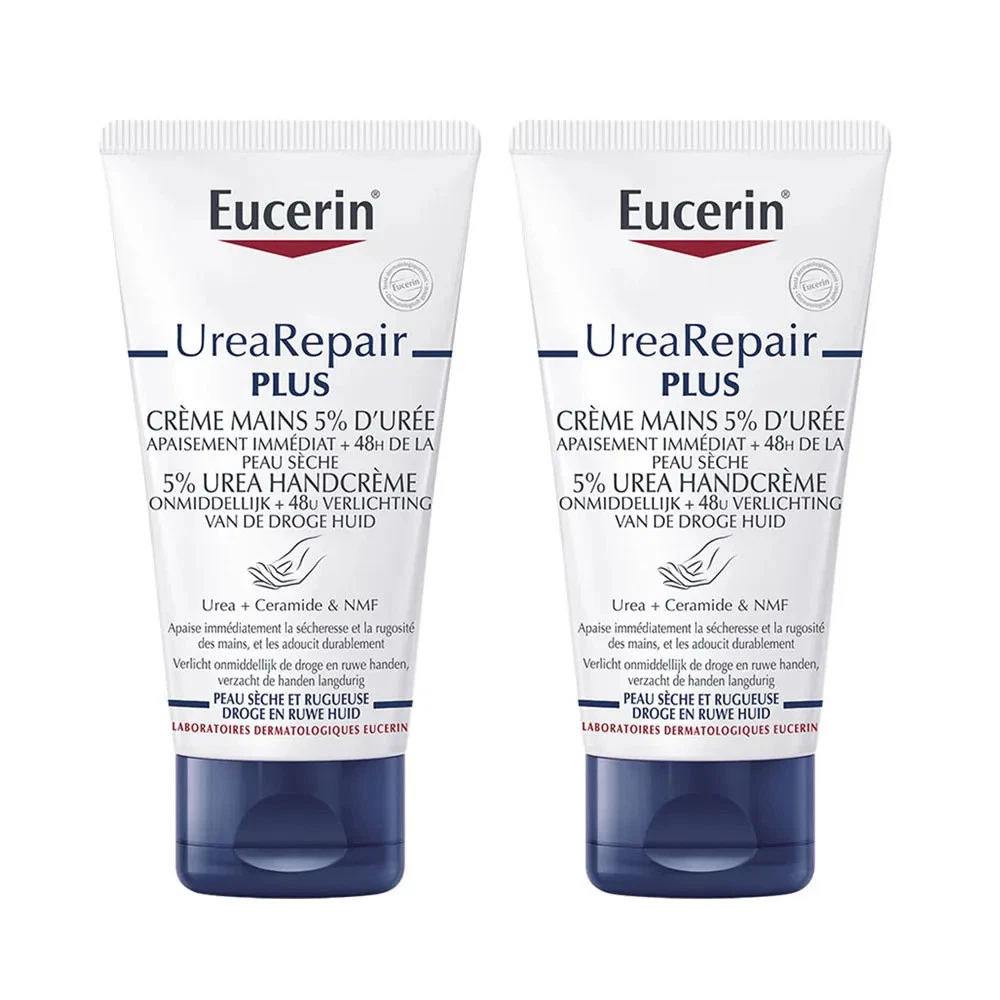 Eucerin UreaRepair PLUS 5% Urea Hand Cream is an intensive moisturizer designed to soothe, repair, and protect dry, rough, and irritated hands. Formulated with 5% urea, ceramides, and natural moisturizing factors (NMFs), this dermatologically tested cream provides immediate and long-lasting hydration, restoring the skin’s natural barrier while reducing roughness and discomfort.
