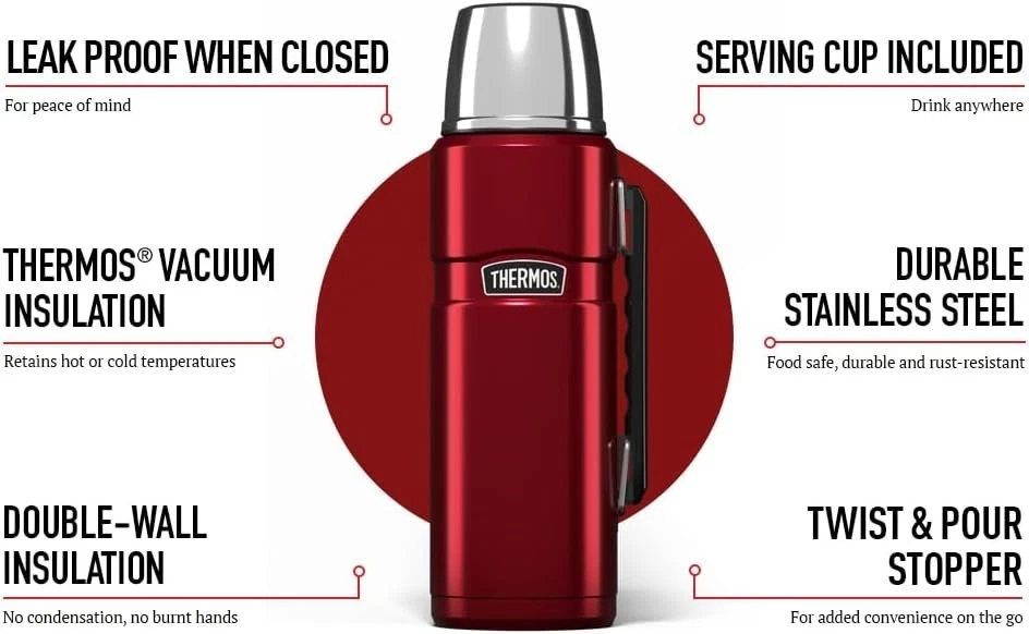 Genuine Thermos Brand Stainless King Flask 1.2L red