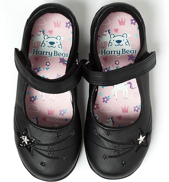 • Step Into Magic With Unicorn School Shoes: Bring the magic to school with these cute unicorn school shoes, perfect for little ones who love a touch of enchantment in their wardrobe. Designed in classic black with a star pattern and stitched detailing at the front, these girls school shoes are ideal for everyday wear. Whether it’s school time or playtime, these girls black school shoes deliver comfort all day long