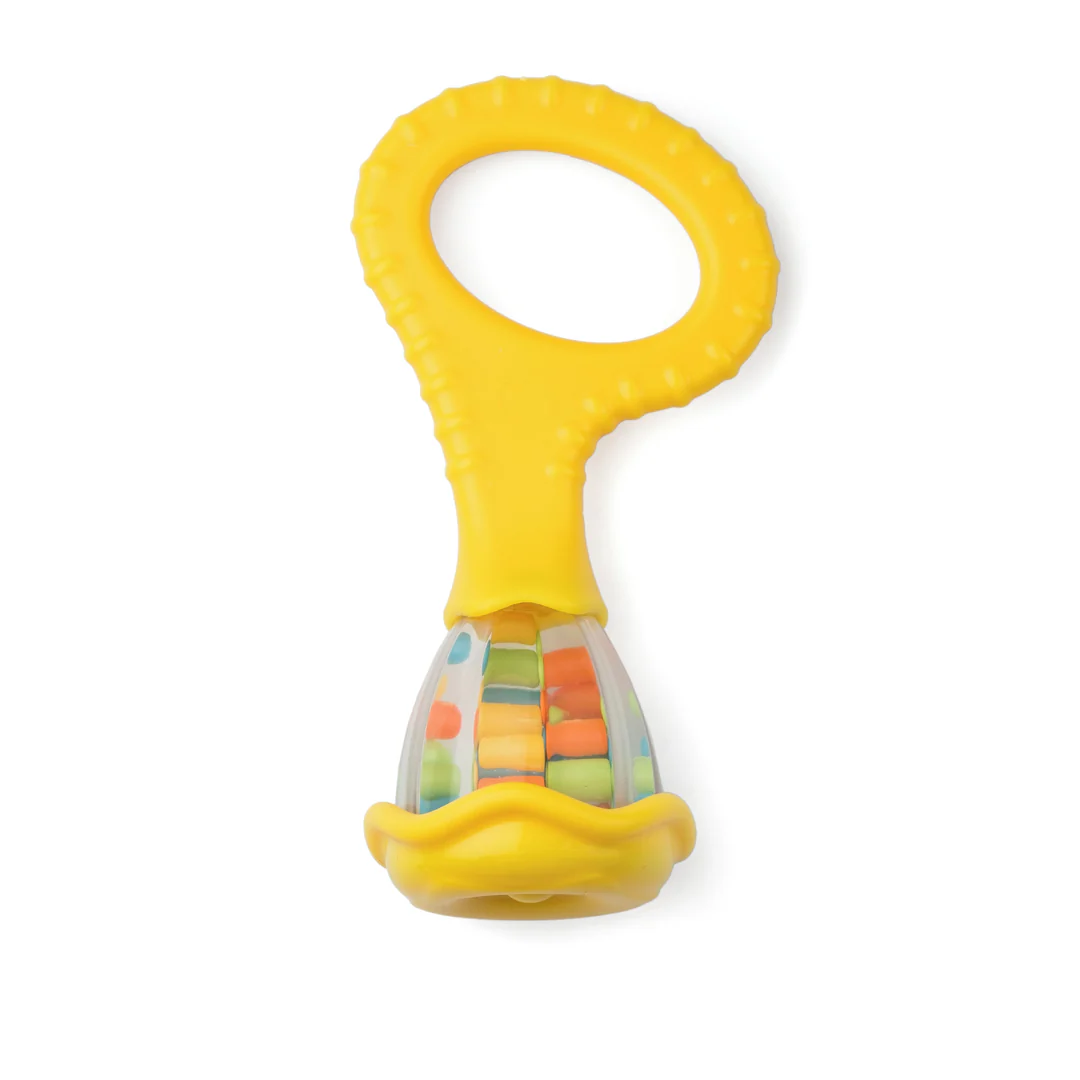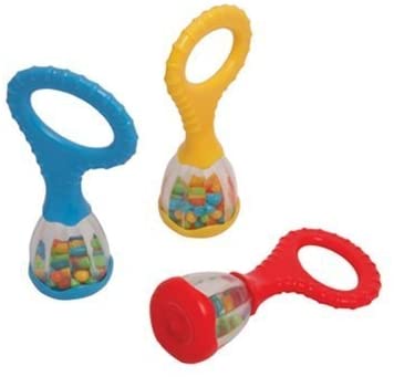 Your baby will be enchanted by the sight and sound of the colourful beads as they whirl around the transparent tube, making our Baby Maraca your little one’s ideal first musical instrument.