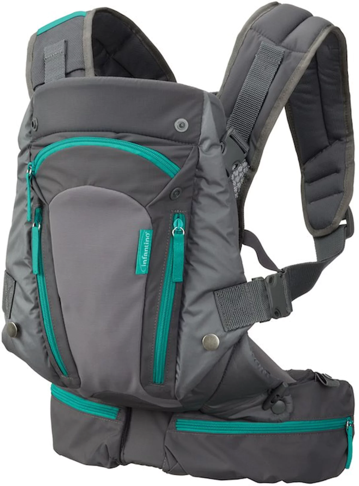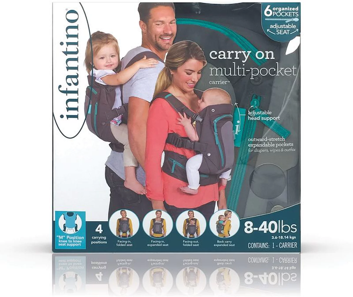 Infantino Carry On Multi-Pocket Baby Carrier, a versatile 4-in-1 baby carrier designed for use from birth up to approximately 36 months.