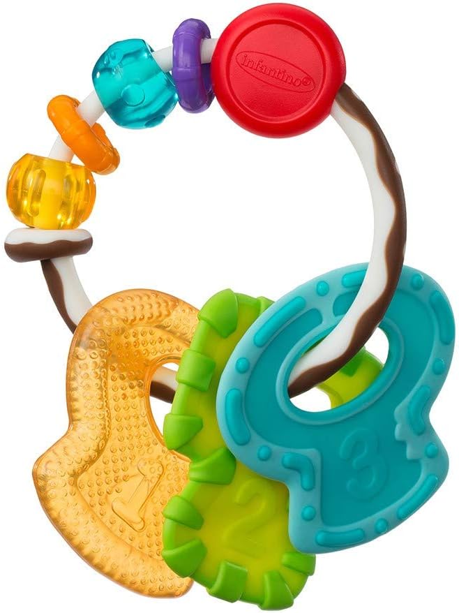 Infantino Slide & Chew Teether Keys, a multi-textured baby teething toy designed to soothe sensitive gums.