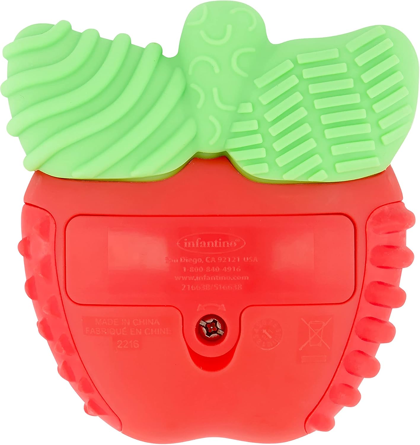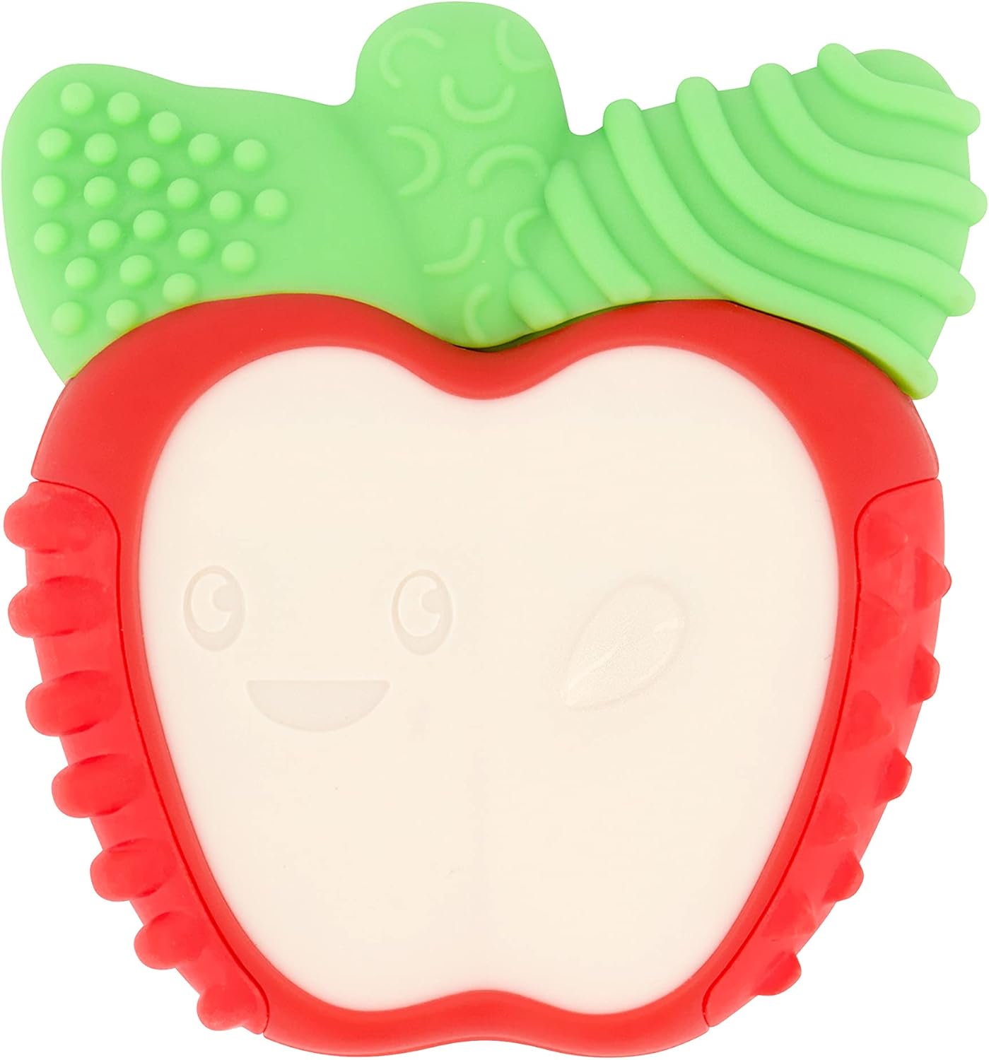 - Design: It features a red apple shape with green bristle leaves that act as a “first toothbrush” to reach various parts of the mouth.