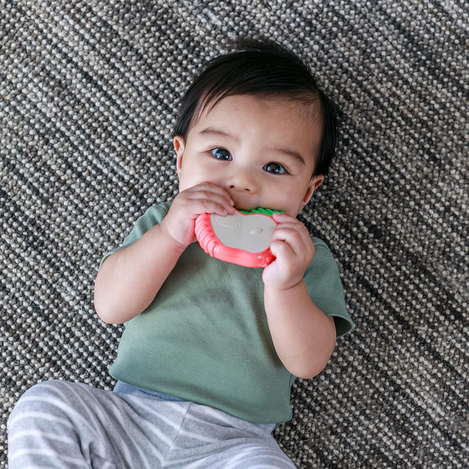 Infantino Lil’ Nibblers Vibrating Teether – Apple, a sensory teething toy designed for infants ages 3 months and up.
