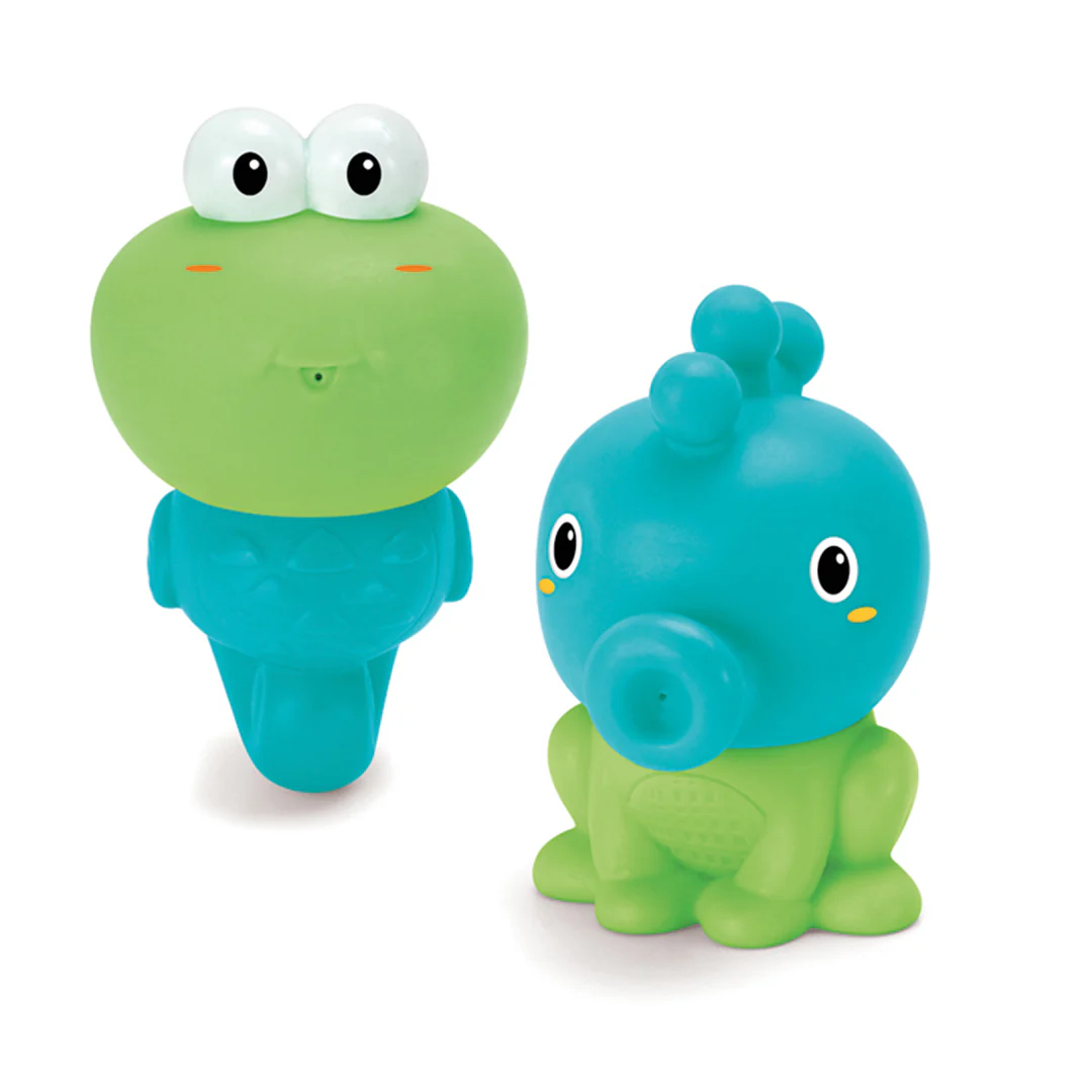Four mix and match bath pals make for fun in the tub! Pull apart the turtle, octopus, sea horse and frog and snap them together to create silly characters. Squeeze the animals pals to squirt a stream of water. Very easy to dry and clean, helpingĀ parents avoid mildew and mold. All characters can be stored into the transparent aquarium with cap.