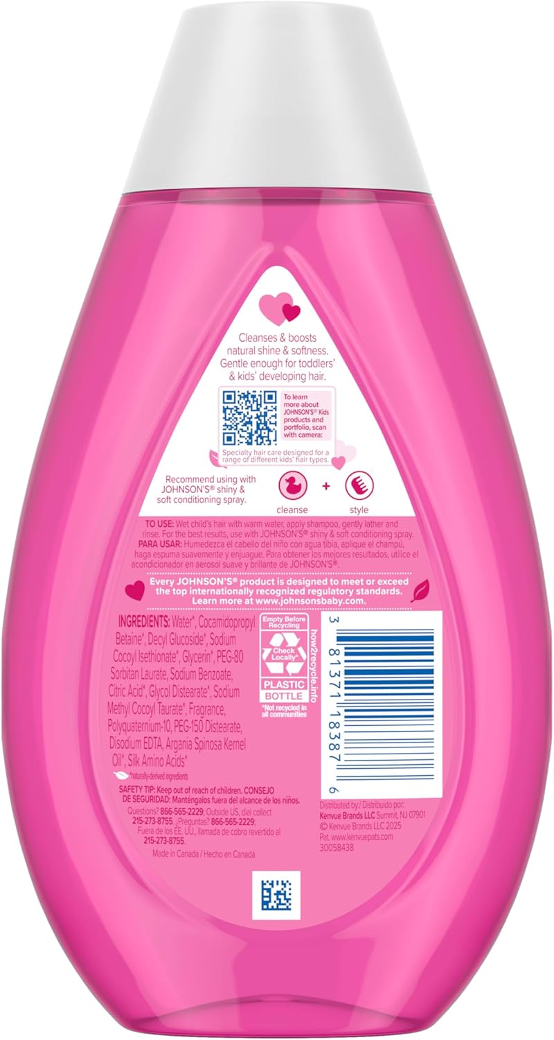 - SHINY HAIR SHAMPOO FOR KIDS & TODDLERS: 13.6-fluid ounce bottle of Johnson’s Shiny & Soft Shampoo for Kids to boost natural shine, cleanse toddler’s delicate hair & promote long-lasting shine