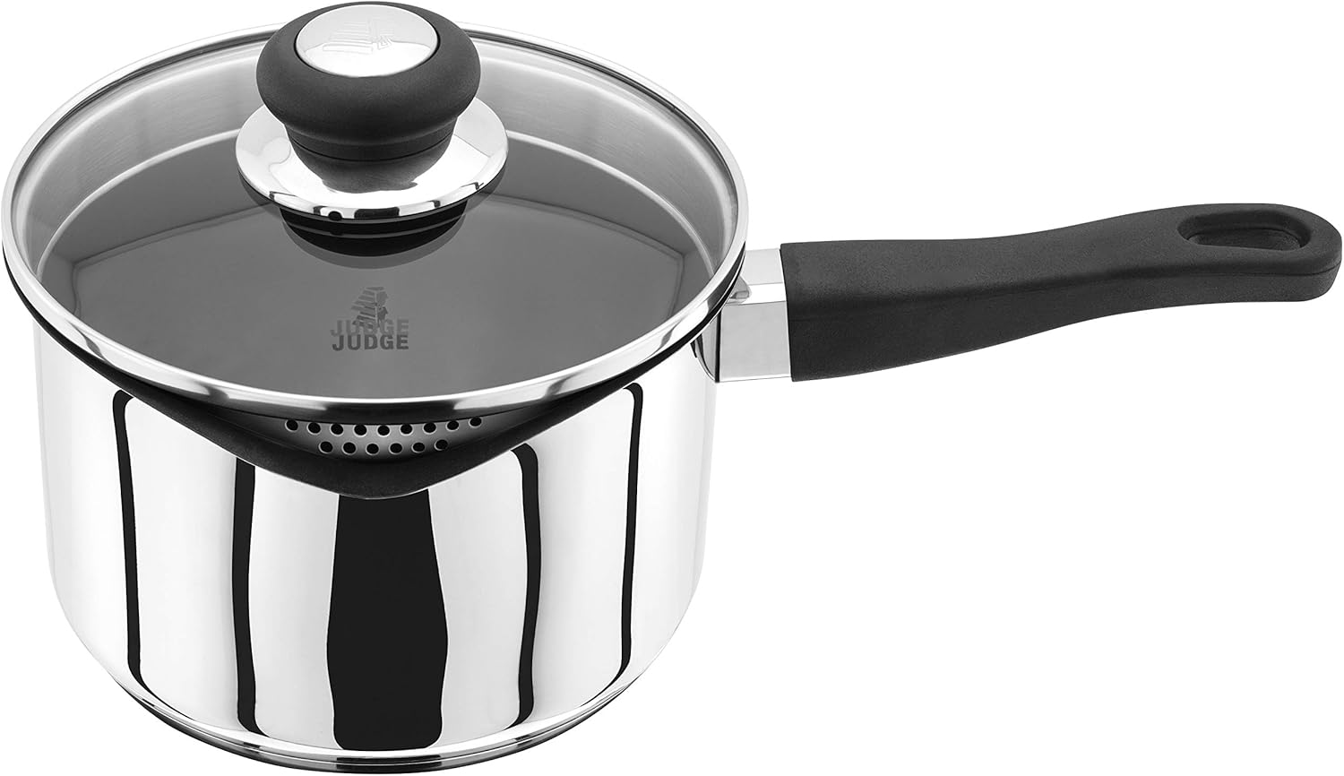 Find & Get Products Judge Judge Vista Draining J306EA Stainless Steel Non-Stick Large Saucepan with Pouring Lip 18cm 1.5L