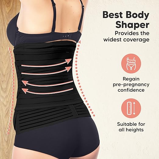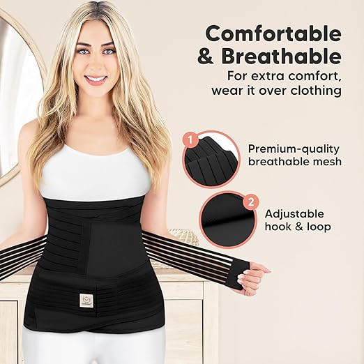 - Essential for Postpartum & Diastasis Recti Recovery – Our adjustable belly binder supports your body after birth. It aids in Diastasis Recti recovery by closing the gaps between abdominal muscles. Refer to the size guide for an accurate fit.