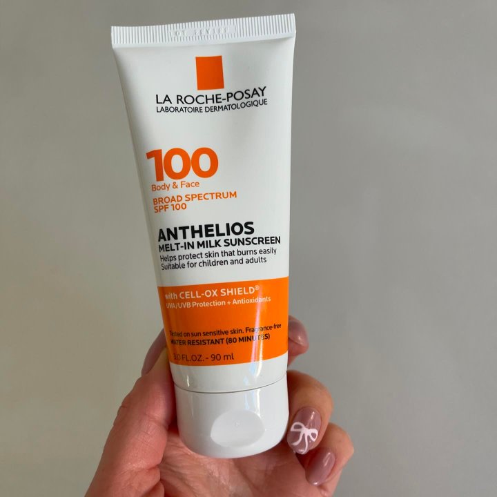 a Roche Posay Anthelios Melt-In Body & Face Sunscreen SPF 60 is a broad spectrum SPF 60 UVA/UVB sunscreen for face and body that is non-greasy and fast-absorbing. It leaves skin hydrated and smooth with a velvety texture. It is suitable for all skin types, including sensitive skin. It is paraben-free and fragrance-free.