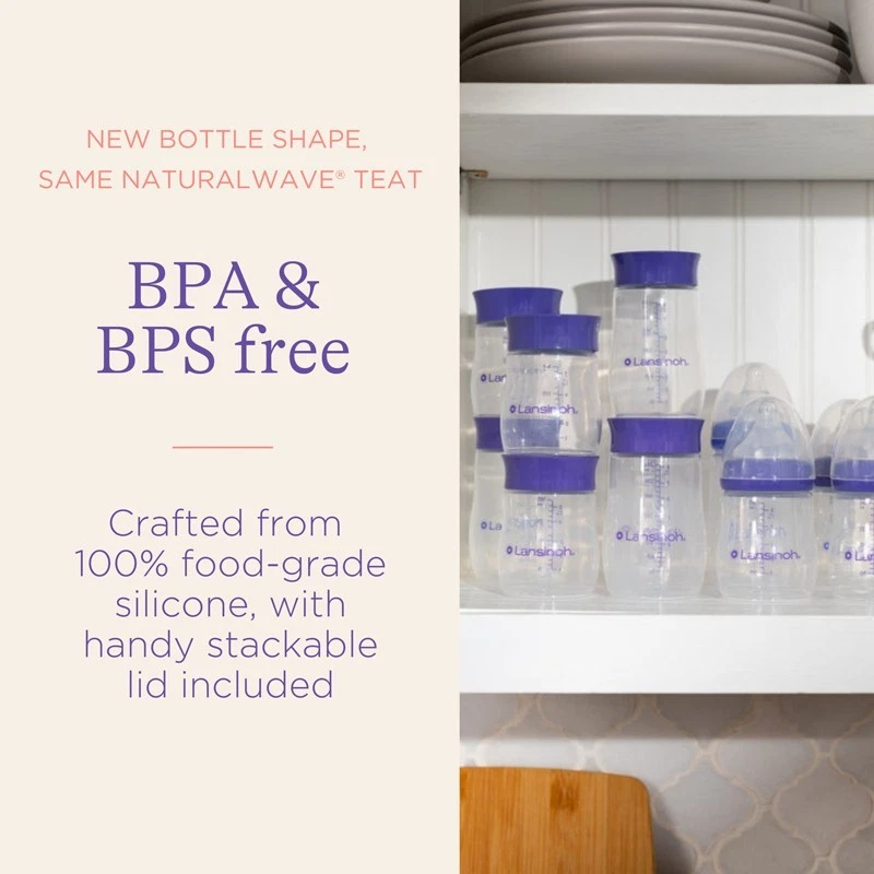 Our Lansinoh’s BPA and BPS free baby bottles, now with an innovative new shape, have been carefully crafted for a comfortable hold while feeding baby.Featuring the innovative NaturalWave® Teat – clinically proven to reduce nipple confusion with extra-soft and flexible silicone which adapts to baby’s palette, encouraging natural tongue movement and allowing baby to control the milk flow.