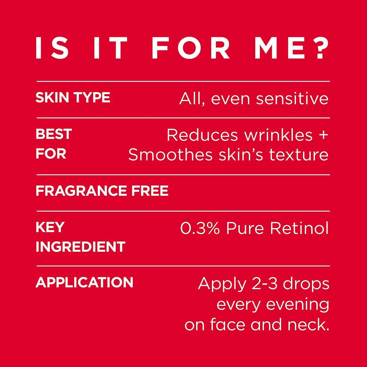 - Face night serum with 0.3% Pure Retinol to visibly reduces deep wrinkles smoothes skin’s texture