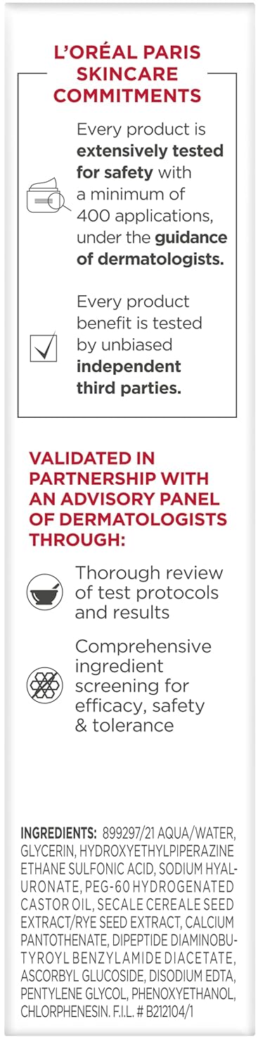 - Application: According to L’Oreal Paris, users should apply 2–3 drops to cleansed, damp skin on the face and neck twice daily, followed by a moisturizer.