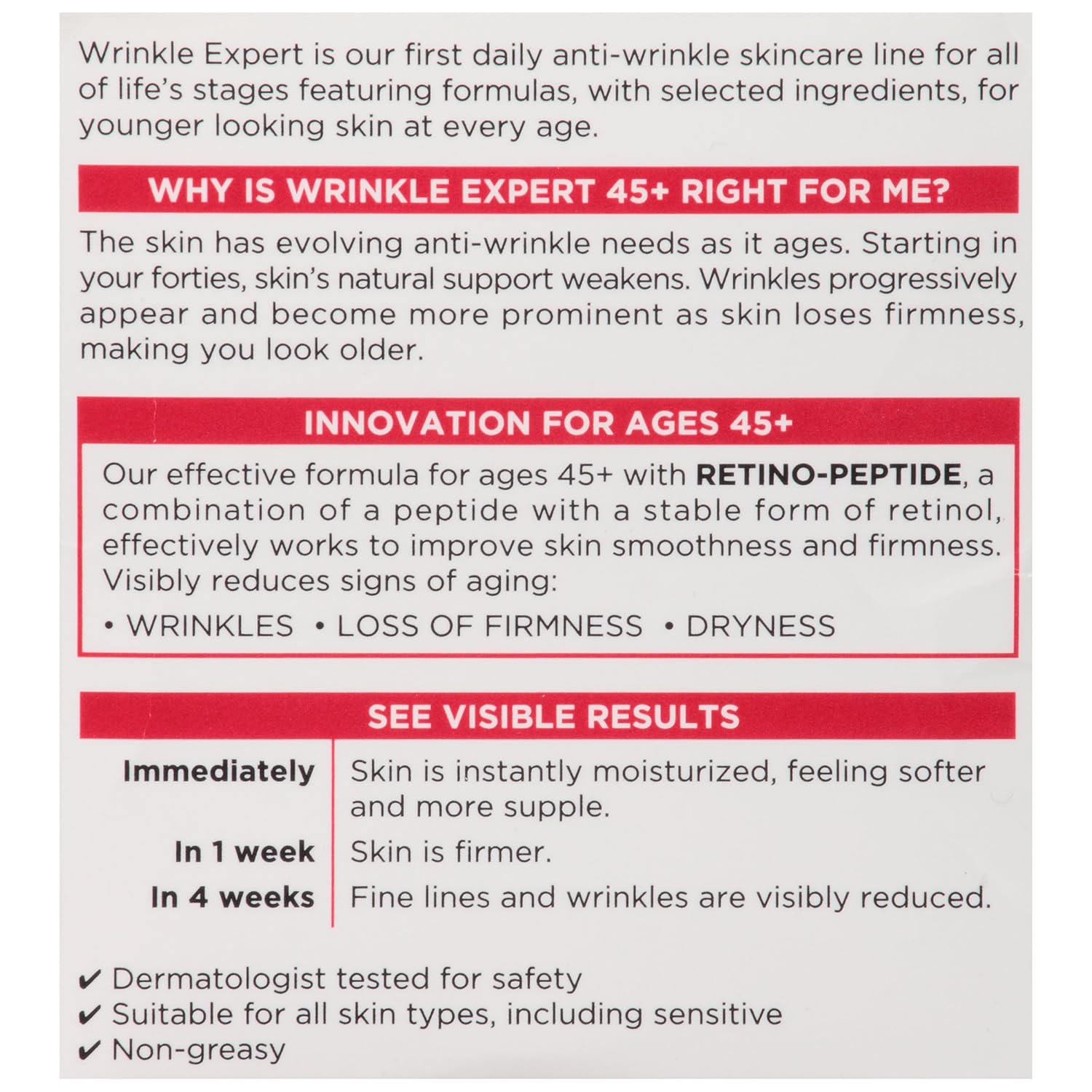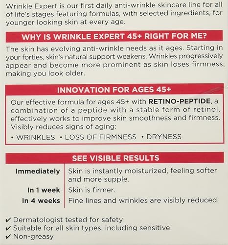 • Wrinkle Expert 45+ is an anti-aging day and night face moisturizer to reduce wrinkles and restore firmness