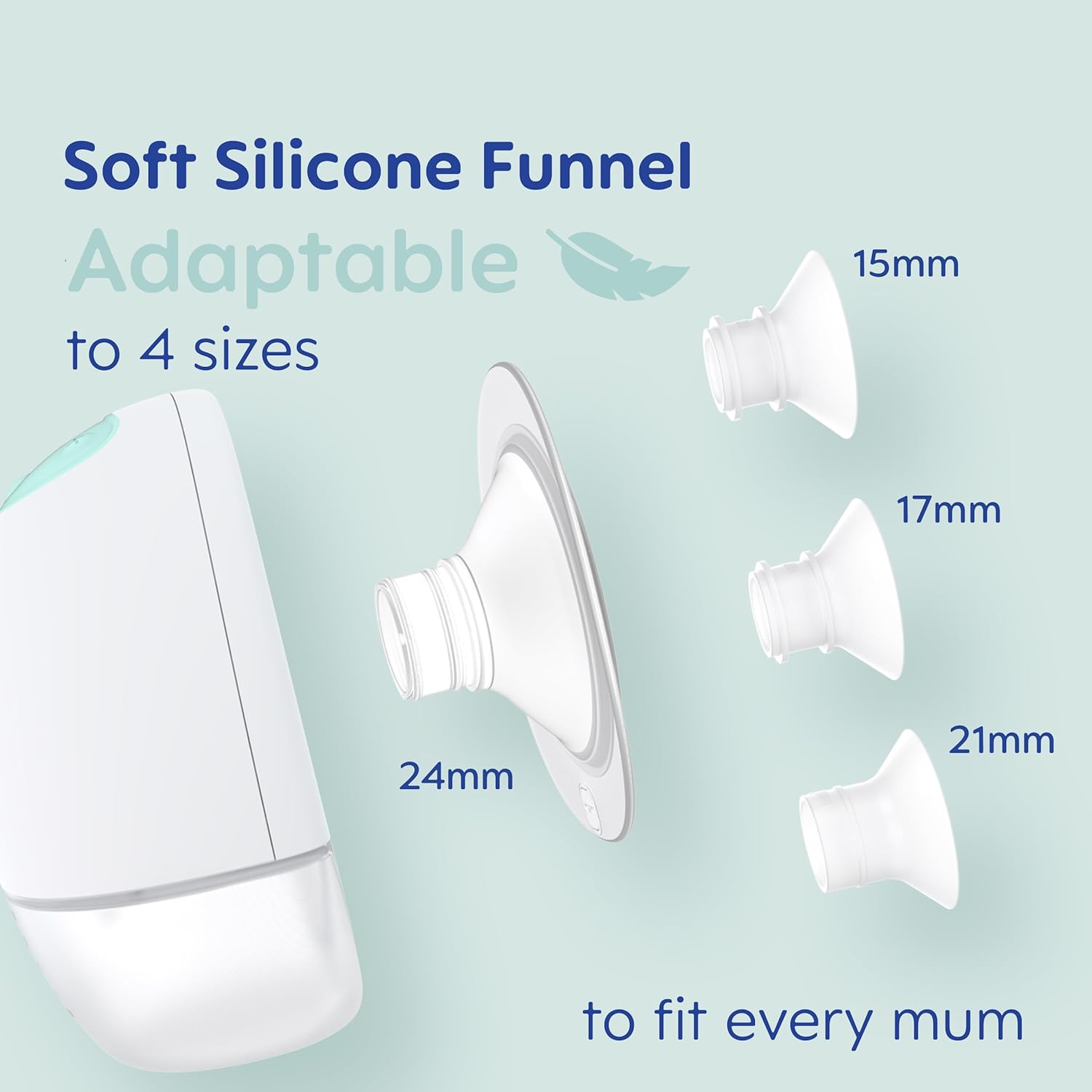 - Comfortable design: Made of soft silicone, the MAM Move Wearable Breast Pump features funnel size inserts adaptable to 4 sizes — the bra adjuster is compatible with nursing bras, ensuring maximum comfort
