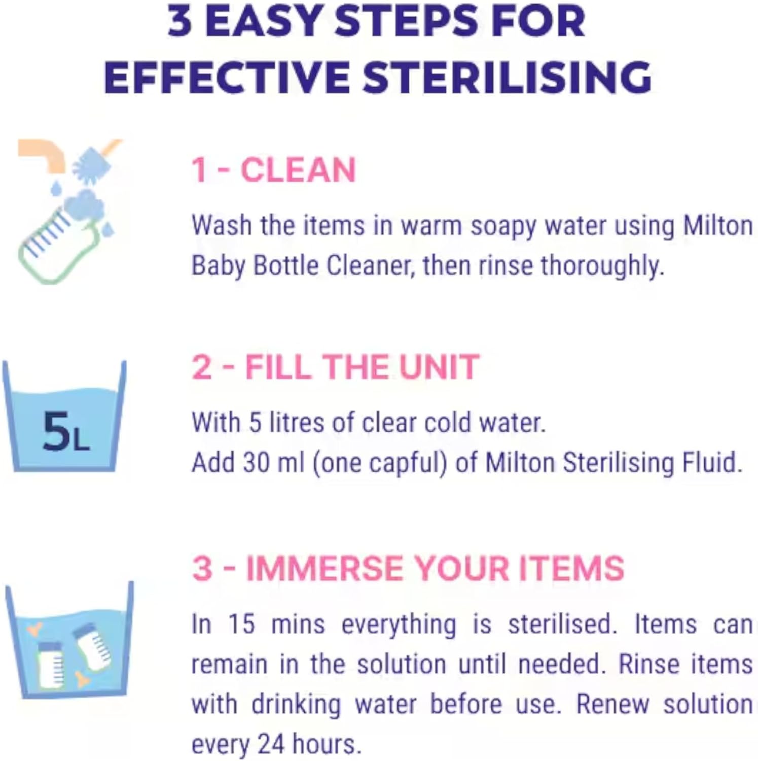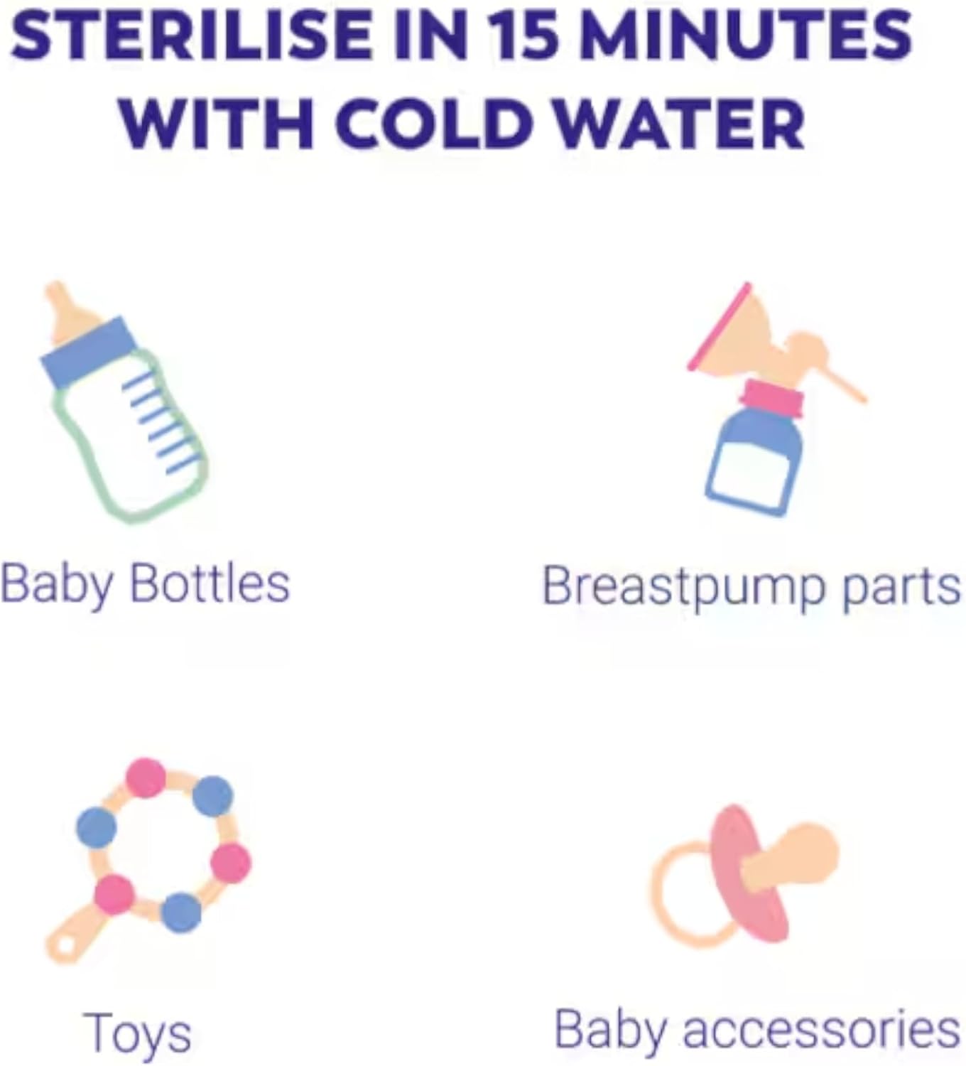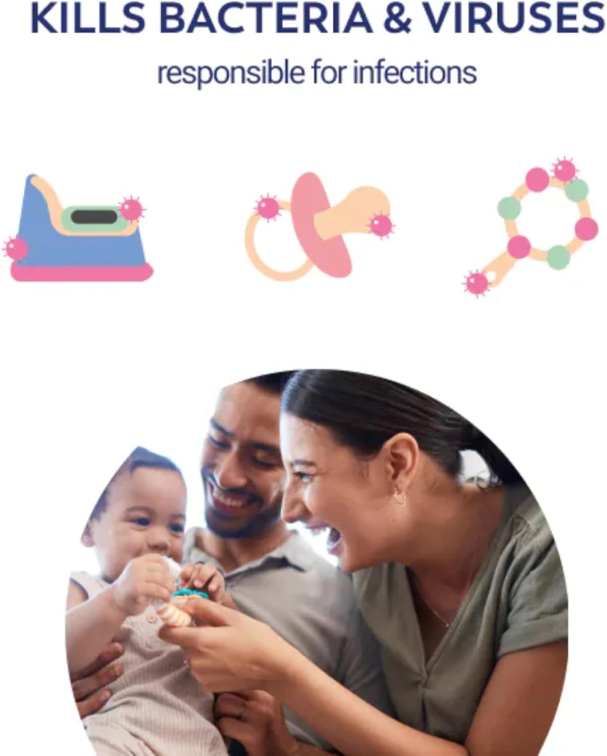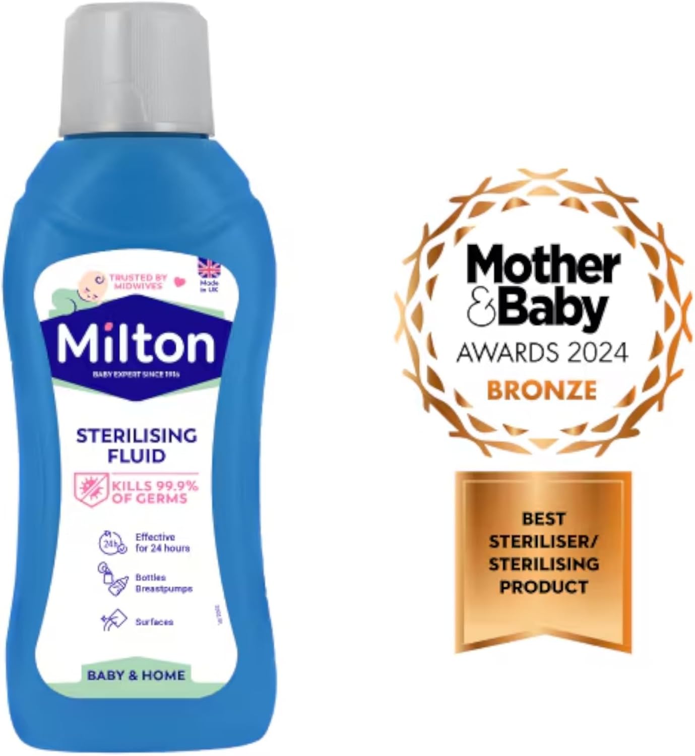 Trusted by Midwives. Kills 99.9% of Germs. Effective for 24 hours. Bottles breastpumps. Surfaces. Baby & Home. Toys. Soothers. Effective in 15 min