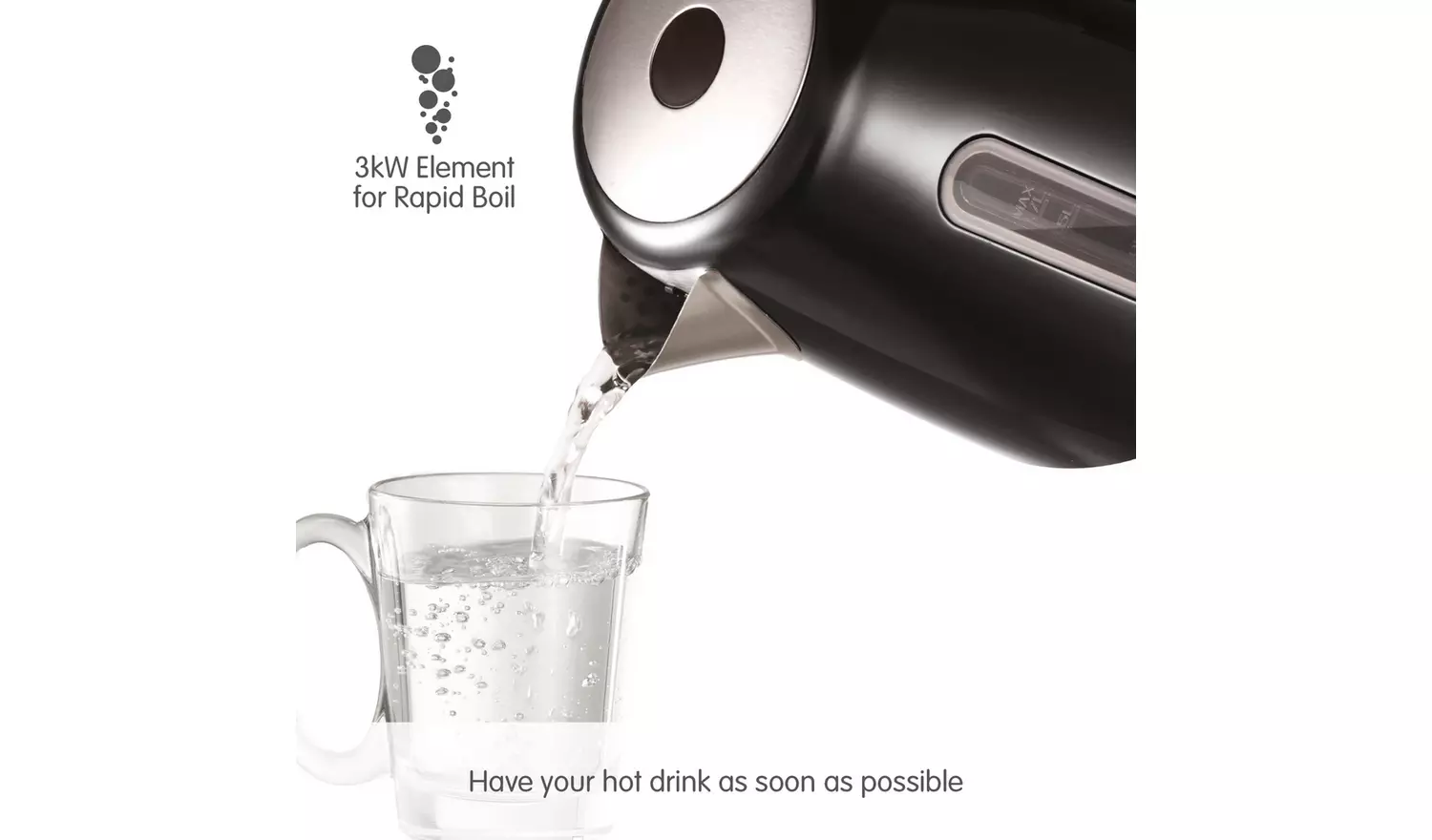 - Boil dry protection – automatically switches off when the kettle is empty.