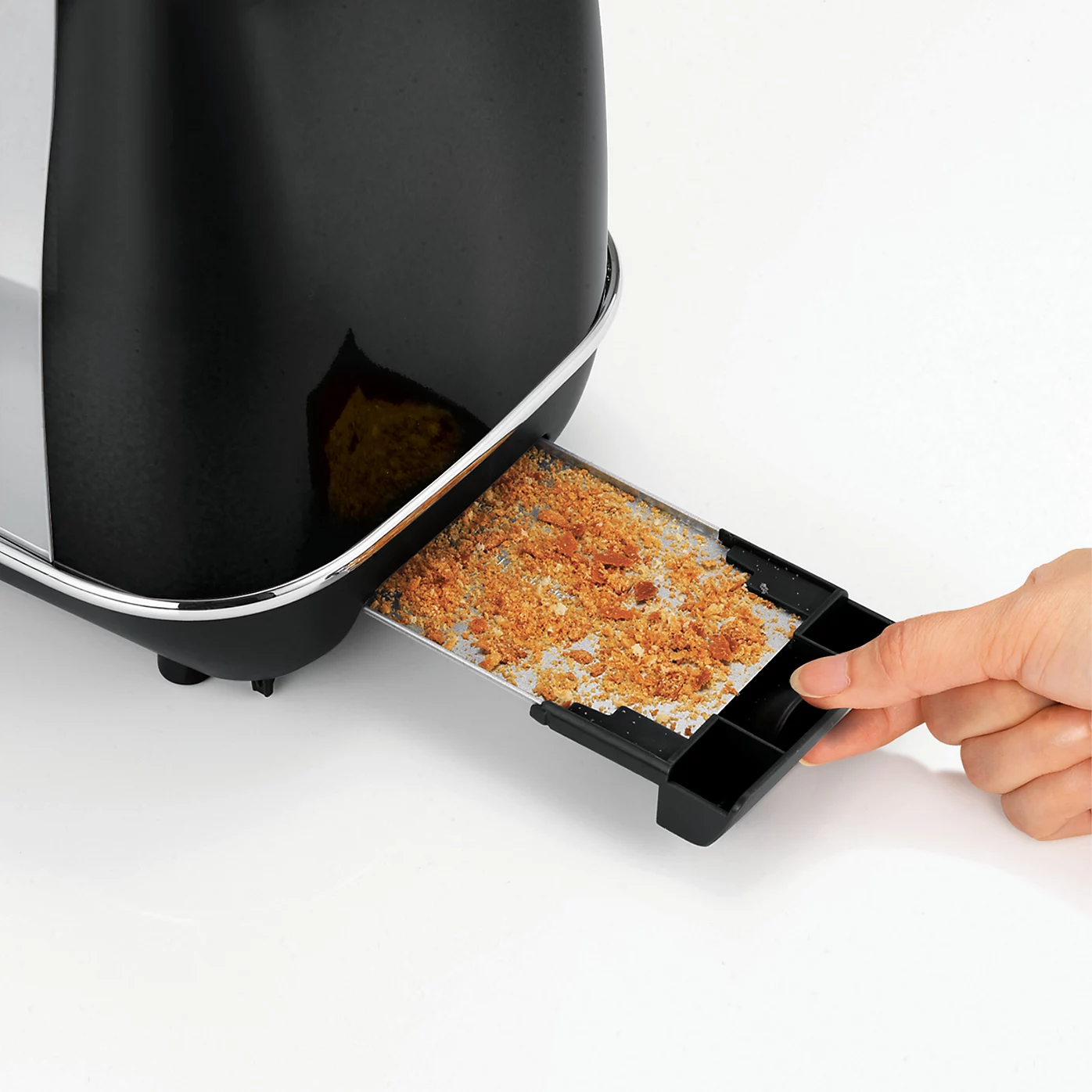 - Removable crumb tray for easy toaster maintenance