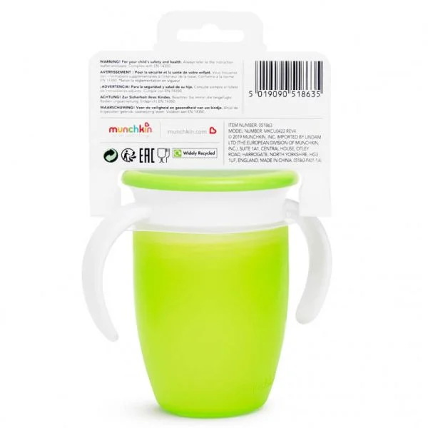 Munchkin Miracle 360 Degree Trainer Cup with Lid, 7oz, green