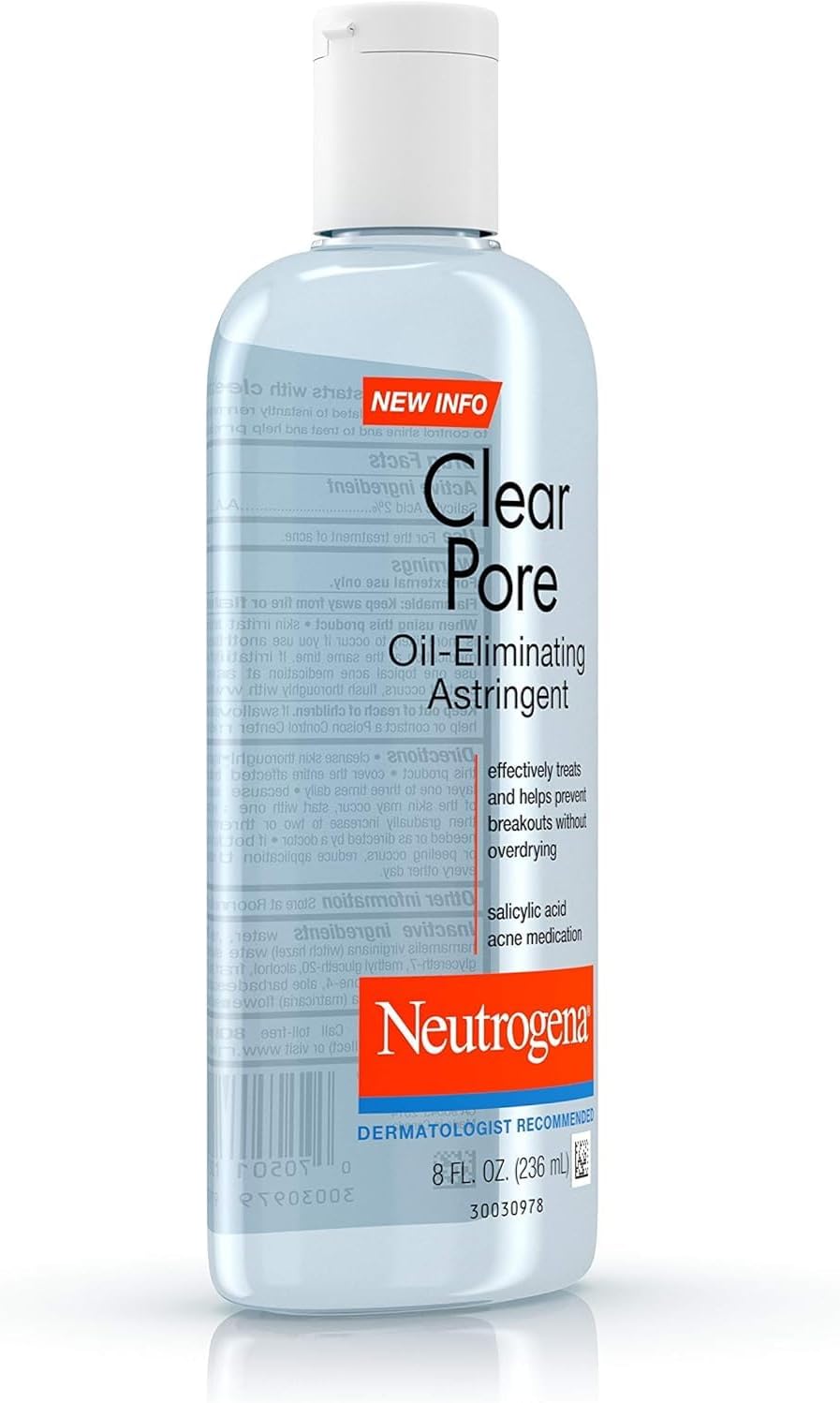 - 8-fluid ounce bottle of Neutrogena Clear Pore Oil-Eliminating Facial Astringent to effectively treat and help prevent future acne breakouts without over-drying the skin