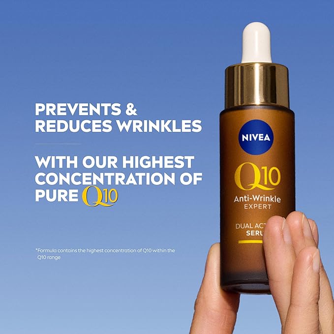 • DUAL ACTION: The NIVEA Q10 Anti-Wrinkle Expert Dual Action Facial Serum effectively reduces wrinkles thanks to our innovative combination of power ingredients GLYCOSTOP and Q10