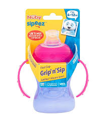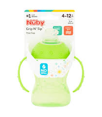 The Nuby Explora Non-Spill Cup 295ml is a BPA-free, leak-resistant trainer cup designed to help children transition from a bottle to a cup, featuring a soft silicone spout and easy-grip handles. It is available from several online retailers.