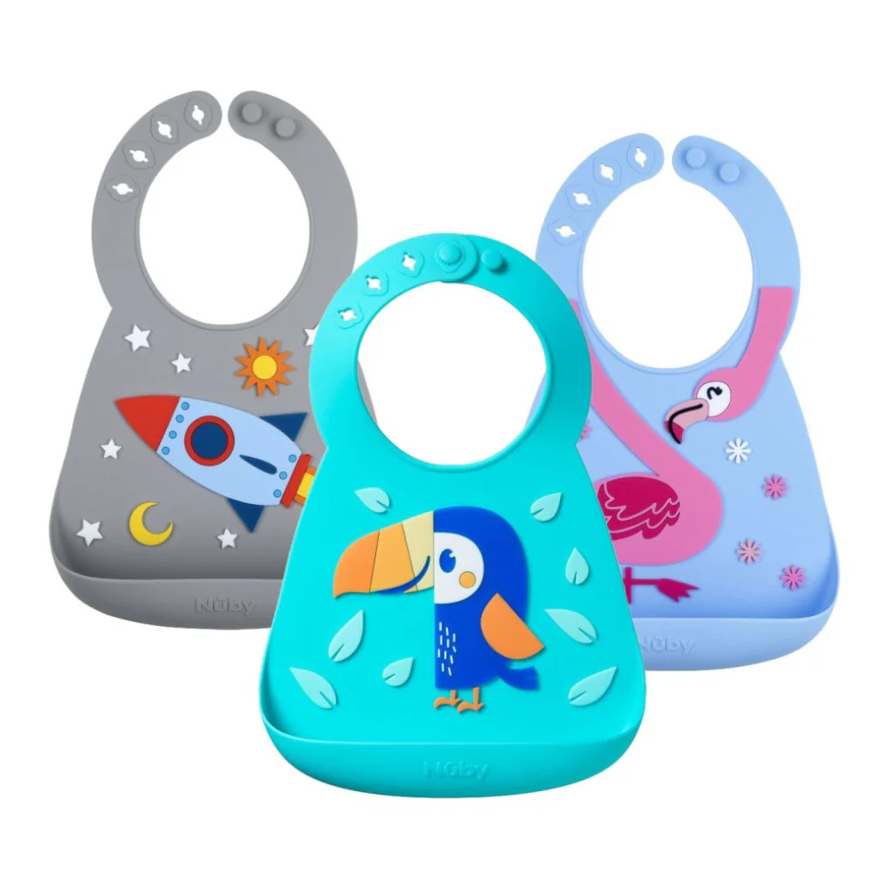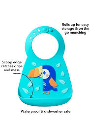 - Portability: The soft, flexible material allows the bib to be rolled up easily for on-the-go storage in diaper bags.