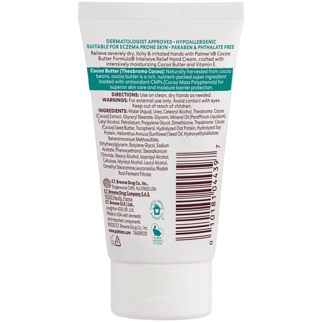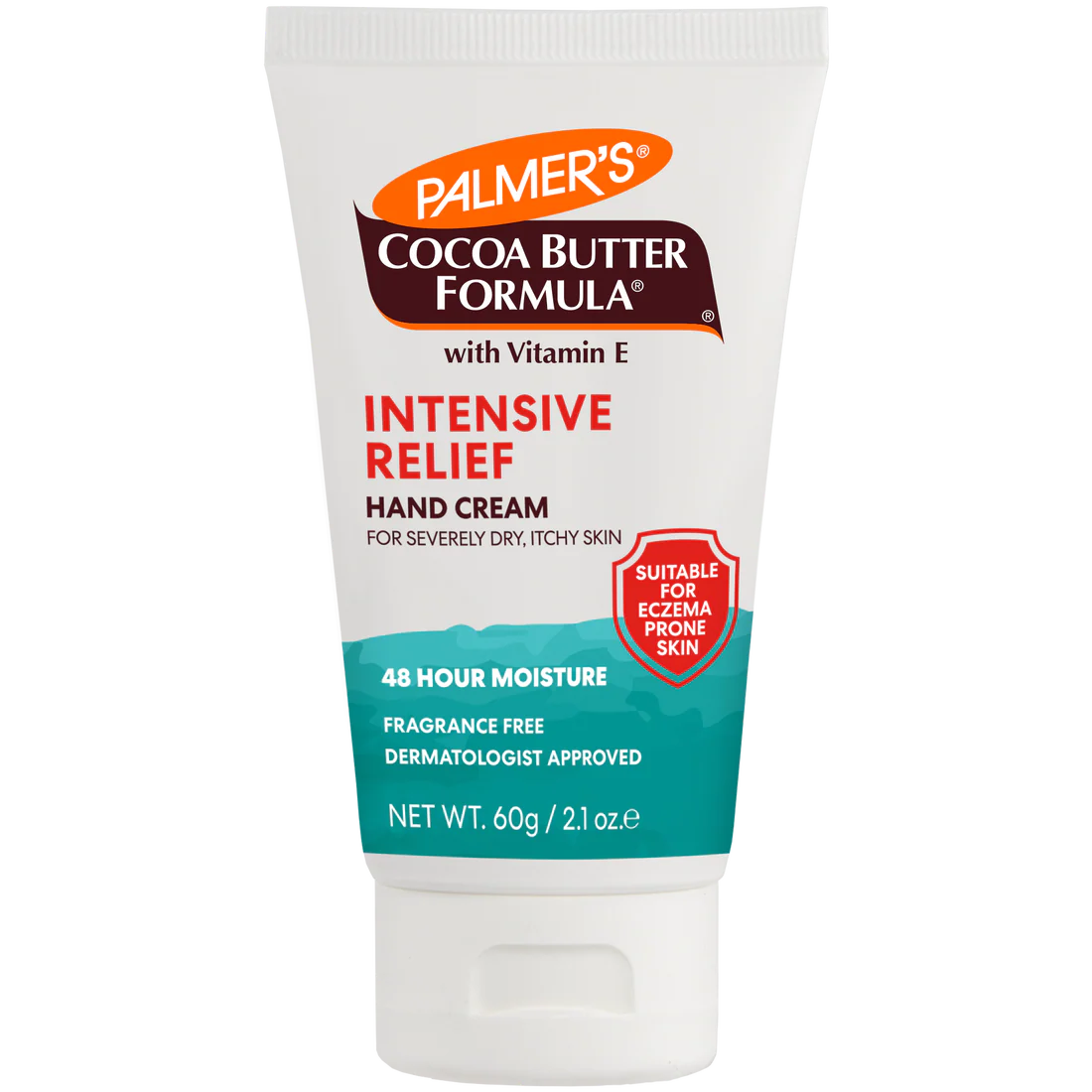 Palmer’s Cocoa Butter Formula Intensive Relief Hand Cream provides effective and long-lasting relief for severely dry, itchy, and irritated hands, using a rich blend of cocoa butter and vitamin E. It is a fragrance-free, dermatologist-approved formula suitable for sensitive and eczema-prone skin.