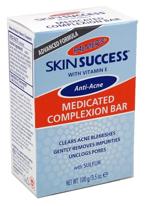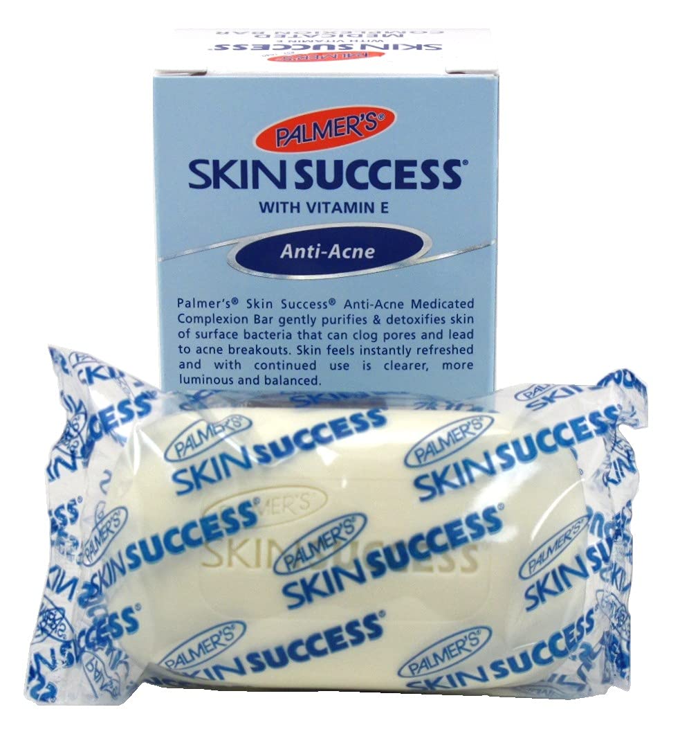 Gently Removes Impurities, No Sulfates Or Parabens, Clears Acne Blemishes, With Vitamin E, Unclogs Pores. Palmer’s Skin Success Anti-Acne Medicated Complexion Bar gently purifies and detoxifies skin of surface bacteria that can clog pores and lead to acne breakouts. Skin feels instantly refreshed and with continued use, skin is clearer, more luminous and balanced. Vitamin E: a powerful antioxidant that helps improve the appearance of scars, stretch marks and imperfections on the skin, giving a more even and toned appearance.