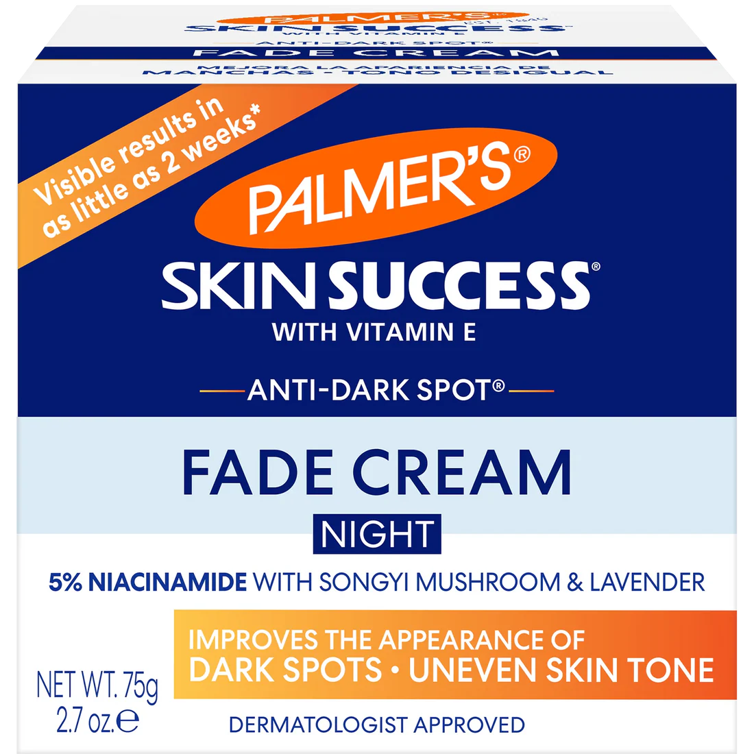 Palmer’s Skin Success Anti-Dark Spot Night Fade Cream targets dark spots, age spots, and uneven skin tone using a blend of key ingredients like niacinamide and retinol. It is widely available online from major retailers such as Amazon and Walmart.